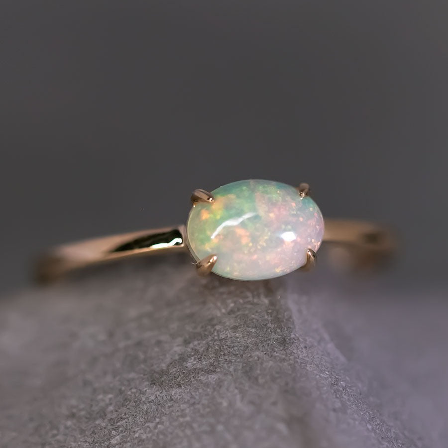 14K Yellow Gold Engagement Ring featuring an Oval Ethiopian Opal.