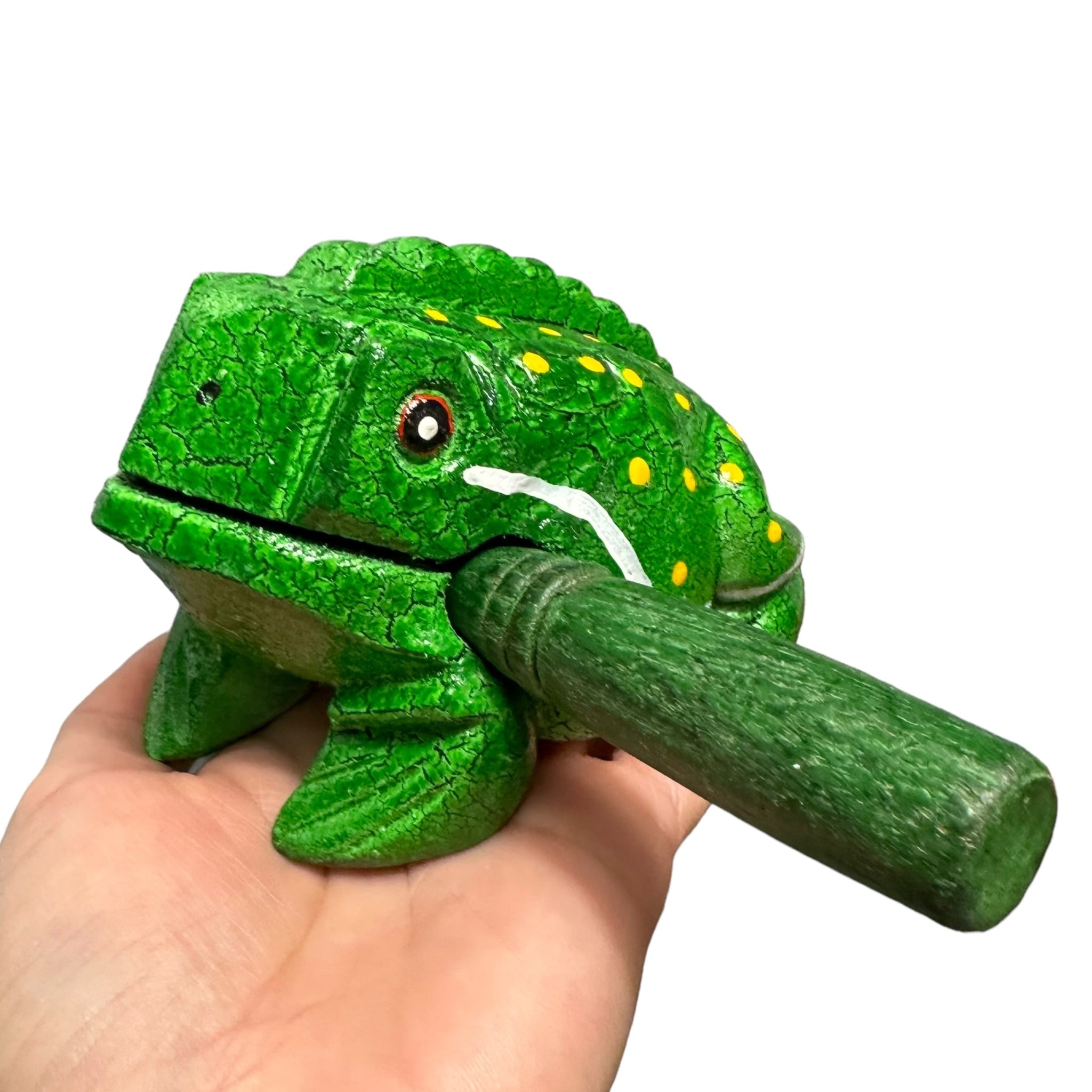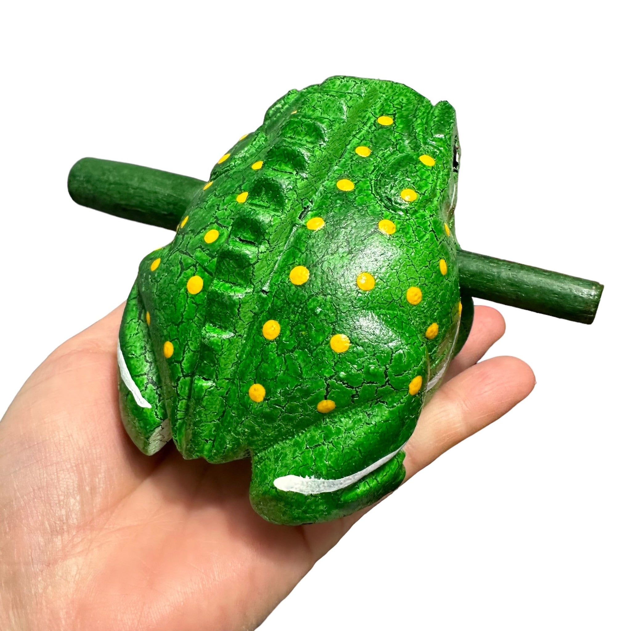 4" Wooden Musical Frog - Green Leaf Design (Percussion Instrument)