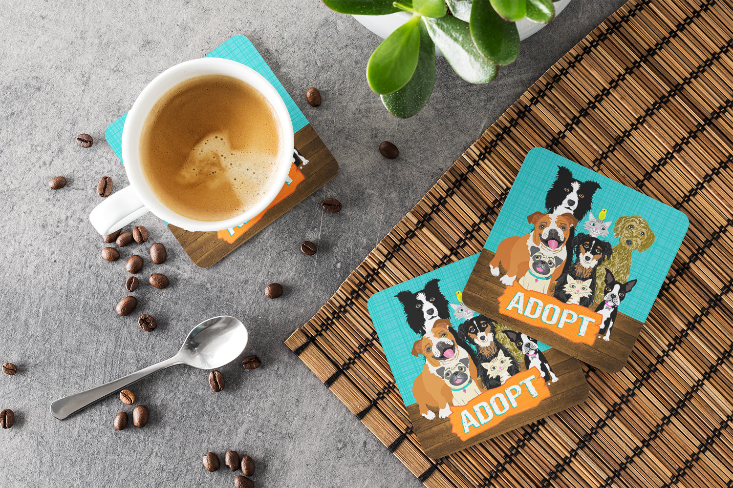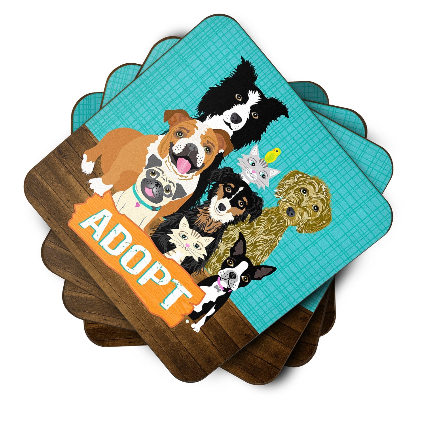Decorate your space with our Multiple Dogs artwork on a Coaster set. Presenting our Set of 4 Foam Coasters, a stylish and practical addition to your table setting. Each square coaster, measuring 3 1/2 inches by 3 1/2 inches, is perfectly sized to accommodate various drinkware, from coffee mugs to tumblers. These coasters stand out with their full-color artwork, permanently dyed onto the material for a vibrant and fade-resistant finish. They're not just functional, they're a fashionable statement, adding a touch of flair to any gathering or event. Our foam coasters serve a dual purpose - they protect your table from water stains and are perfect for both hot and cold drinks. The material used is similar to that of our high-quality mouse pads, ensuring durability and heat resistance. These coasters are easy to maintain - simply wash them in the top of your dishwasher and lay flat to dry. The design won't come off, ensuring they retain their vivid colors for years. Pair them with one of our insulated coolers or huggers for a cohesive, thoughtful gift set. Enhance your beverage experience with our Set of 4 Foam Coasters.