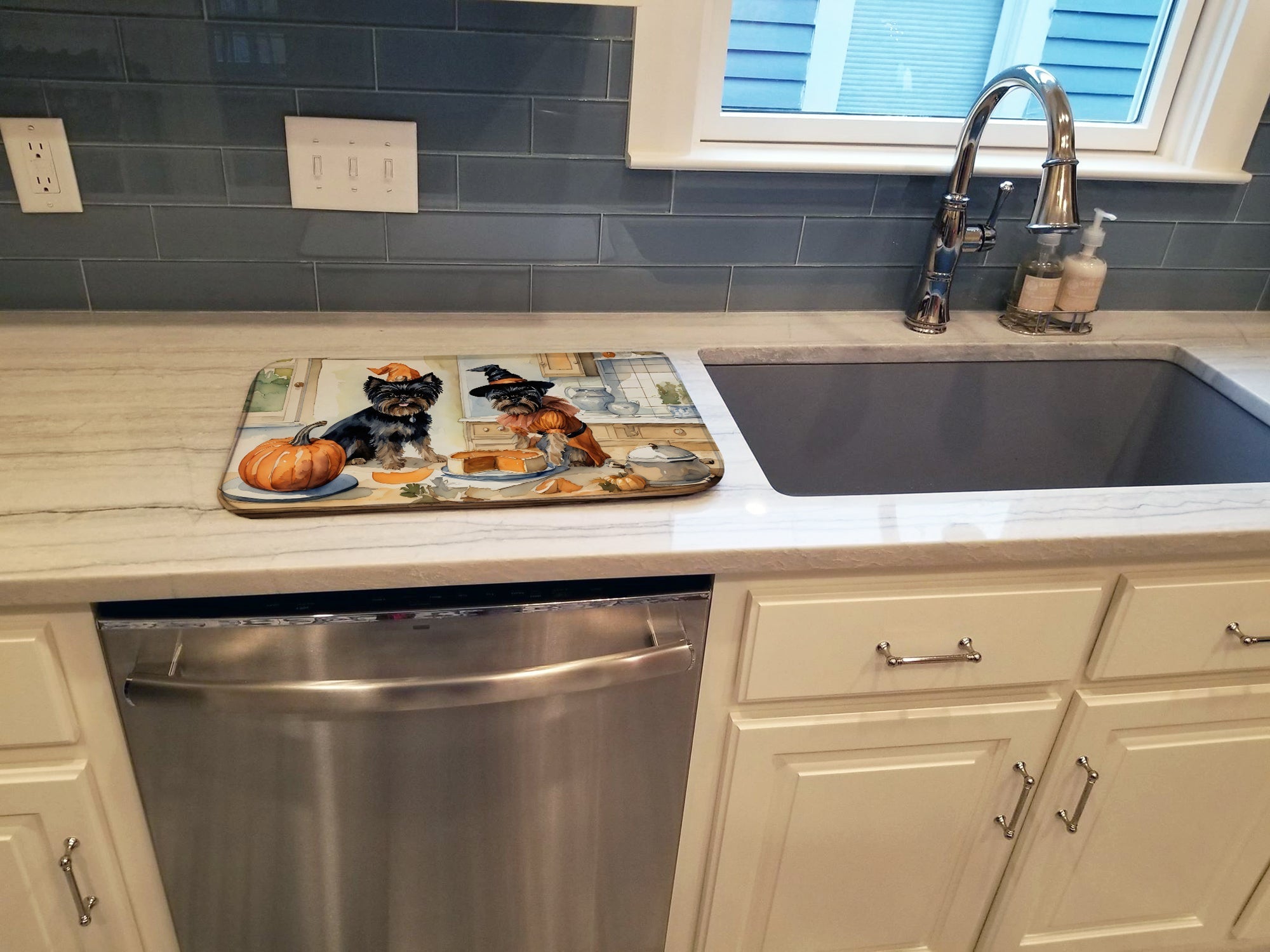 Dish Drying Mat featuring breed specific Affenpinscher artwork. Celebrate Halloween with this Halloween Dish Drying Mat. Say goodbye to messy countertops and soggy dish towels with our innovative dish drying mat. Our high-quality dish drying pad is designed to keep your countertops dry while offering a stylish and efficient solution. Whether you're air drying dishes, glasses, stemware, silverware, pots, pans, bottles, or even fruits and vegetables, our dish mat is the perfect choice. The 14 inches x 22 inches size fits most counters and dish drying racks, and the non-slip design ensures stability. Made with water-absorbent polyester and a polyurethane foam insert, our dish drying mat is not only functional but also durable. It's machine washable and printed in the USA for long-lasting use. The beautiful artwork adds flair to your kitchen decor, making it a perfect housewarming gift or present for any occasion. Upgrade your kitchen experience with our absorbent and versatile dish drying mat.