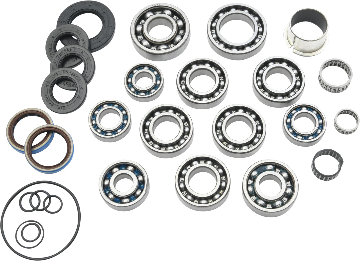 The All Balls Transmission Bearing and Seal Kit (Part #25-7011) is designed to provide reliable performance and long-lasting protection for your vehicle's transmission system. This comprehensive kit includes high-quality bearings and seals engineered to fit specific applications, ensuring smooth operation and preventing leaks. Constructed with durable materials, the components are built to withstand the demanding conditions of daily use and heavy-duty driving.