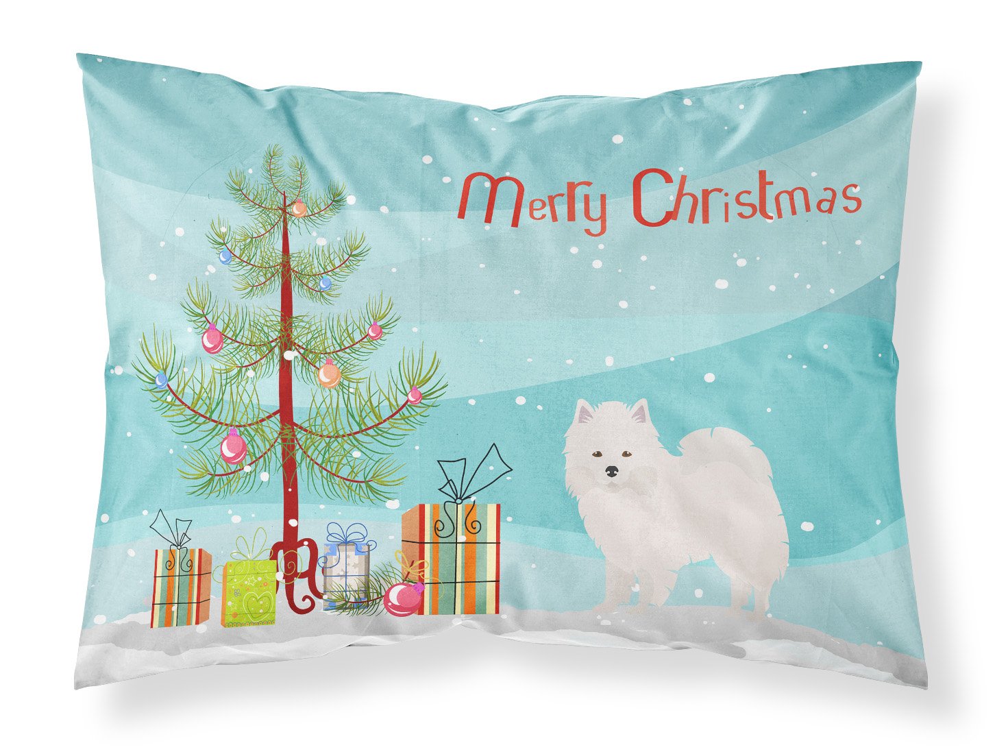 Decorate your space with our Christmas American Eskimo artwork on a Pillowcase. Experience an upgrade in your sleeping comfort with our Fabric Standard Pillowcase, designed to balance style, comfort, and practicality. Showcasing vibrant artwork on the front and a standard white on the back, this pillowcase is more than a functional item�it's an expression of your personal style. Crafted from premium moisture-wicking material, our pillowcase ensures a pleasant sleeping experience. The breathable performance fabric allows for excellent air circulation, keeping you cool and comfortable throughout the night while also demonstrating exceptional quality. This pillowcase, measuring 30 x 20.5 inches with a slender 0.15 inch thickness, and weighing only 0.25 lbs, fits a standard pillow perfectly. Maintaining our pillowcase is hassle-free. It requires no ironing�simply wash in cold water and dry at medium heat. Bring art and luxury into your bedroom with our Fabric Standard Pillowcase. Its unique design and top-tier fabric contribute to a relaxing and rejuvenating sleep experience. Brighten your bedroom decor while enhancing your sleep with our high-performance pillowcase.
