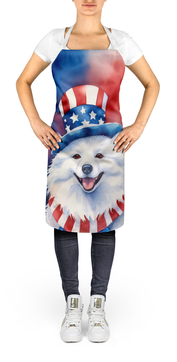 Apron featuring breed specific American Eskimo artwork. Elevate your cooking, baking, and grilling experiences with our versatile Kitchen or BBQ Apron. This Bib Style apron isn't just limited to culinary activities - it also serves as an excellent baking apron, artist apron, server apron, gardening apron, or even a dog grooming apron. The apron showcases vibrant full-color artwork contributed by one of our talented artists, bringing a dash of style to your daily tasks. With dimensions of approximately 27"W x 30"H, it provides ample coverage to protect your clothing from spills and splashes. Our apron is meticulously crafted from 100% Ultra Spun Polyester, known for its durability and lightweight nature. The apron comes with white tie straps, ensuring a comfortable and adjustable fit for all. It's a perfect choice for kitchen apron enthusiasts, whether you are a woman or a man. Designed for easy maintenance, this apron is fully machine washable. The quick-drying polyester material actively reduces staining, keeping your apron looking fresh and new for longer. Our beautifully designed apron isn't just a functional kitchen accessory - it's a fashion statement in the culinary world!