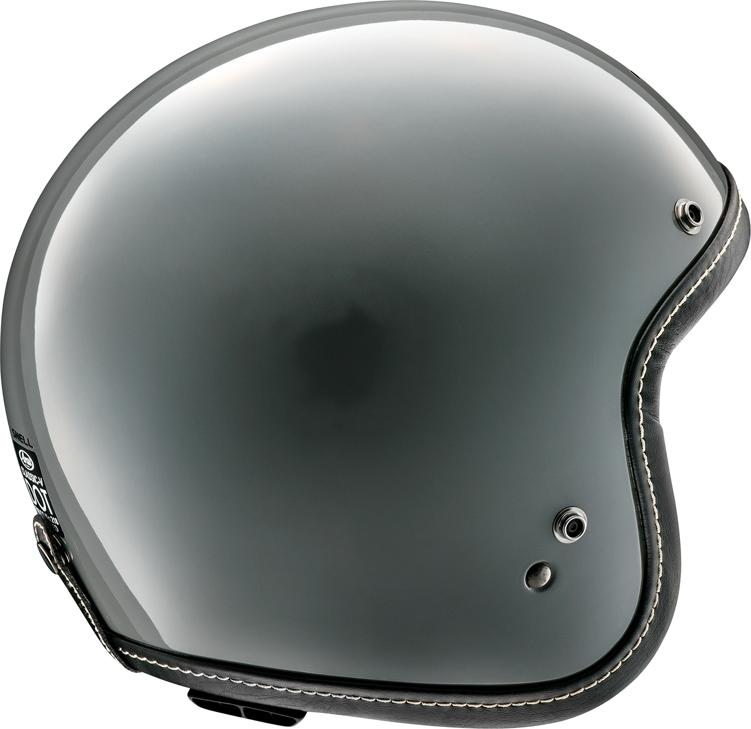 Internally, the helmet features a one-piece, multi-density EPS liner that maximizes energy absorption. Molded from multi-density EPS beads, the liner adapts to different impact zones, providing tailored protection while maintaining a compact profile. This design ensures effective impact energy management, keeping riders safe without compromising comfort or style. The helmet’s aesthetic is complemented by a wide, stitched faux leather trim set into a recessed shell channel, delivering a sleek, refined look. Additionally, a faux-stitched leather goggle strap holder is integrated to prevent goggle straps from slipping during rides, maintaining both safety and convenience.