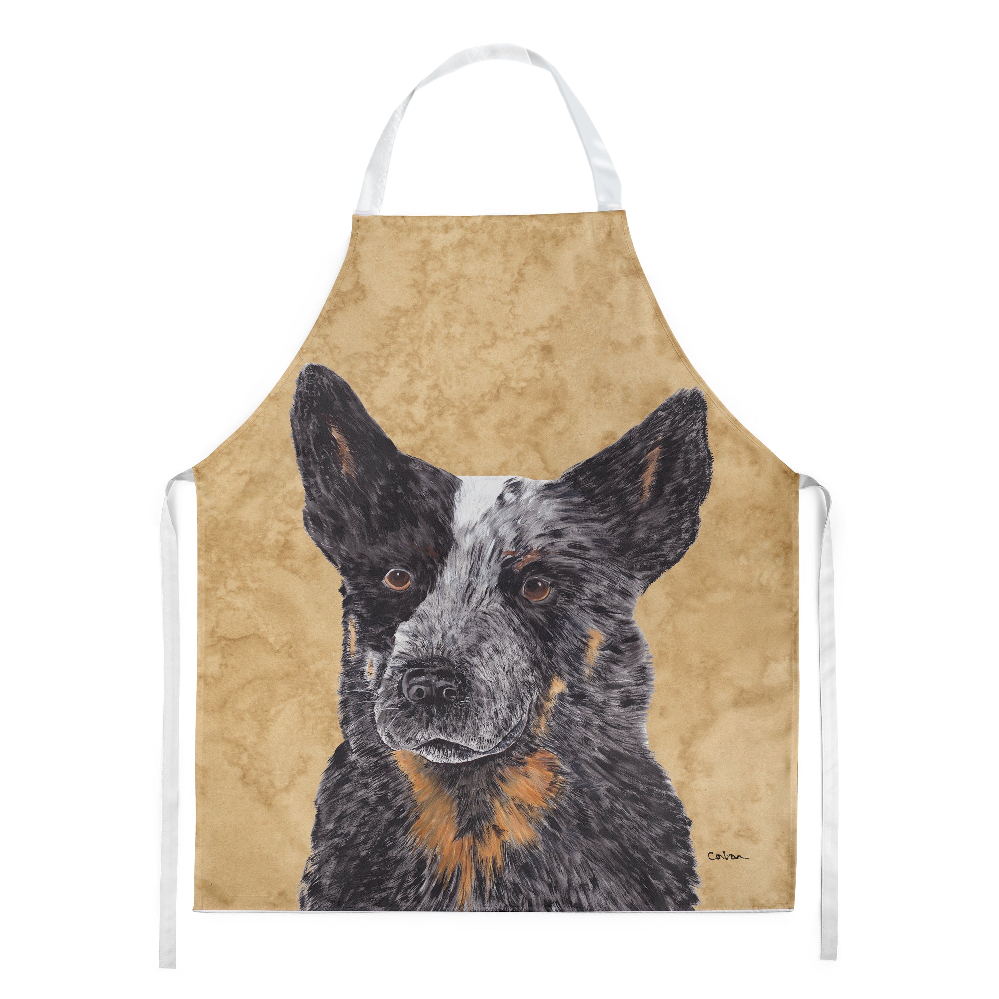 Decorate your space with our Australian Cattle Dog artwork on a Apron. Elevate your cooking, baking, and grilling experiences with our versatile Kitchen or BBQ Apron. This Bib Style apron isn't just limited to culinary activities - it also serves as an excellent baking apron, artist apron, server apron, gardening apron, or even a dog grooming apron. The apron showcases vibrant full-color artwork contributed by one of our talented artists, bringing a dash of style to your daily tasks. With dimensions of approximately 27"W x 30"H, it provides ample coverage to protect your clothing from spills and splashes. Our apron is meticulously crafted from 100% Ultra Spun Polyester, known for its durability and lightweight nature. The apron comes with white tie straps, ensuring a comfortable and adjustable fit for all. It's a perfect choice for kitchen apron enthusiasts, whether you are a woman or a man. Designed for easy maintenance, this apron is fully machine washable. The quick-drying polyester material actively reduces staining, keeping your apron looking fresh and new for longer. Our beautifully designed apron isn't just a functional kitchen accessory - it's a fashion statement in the culinary world!