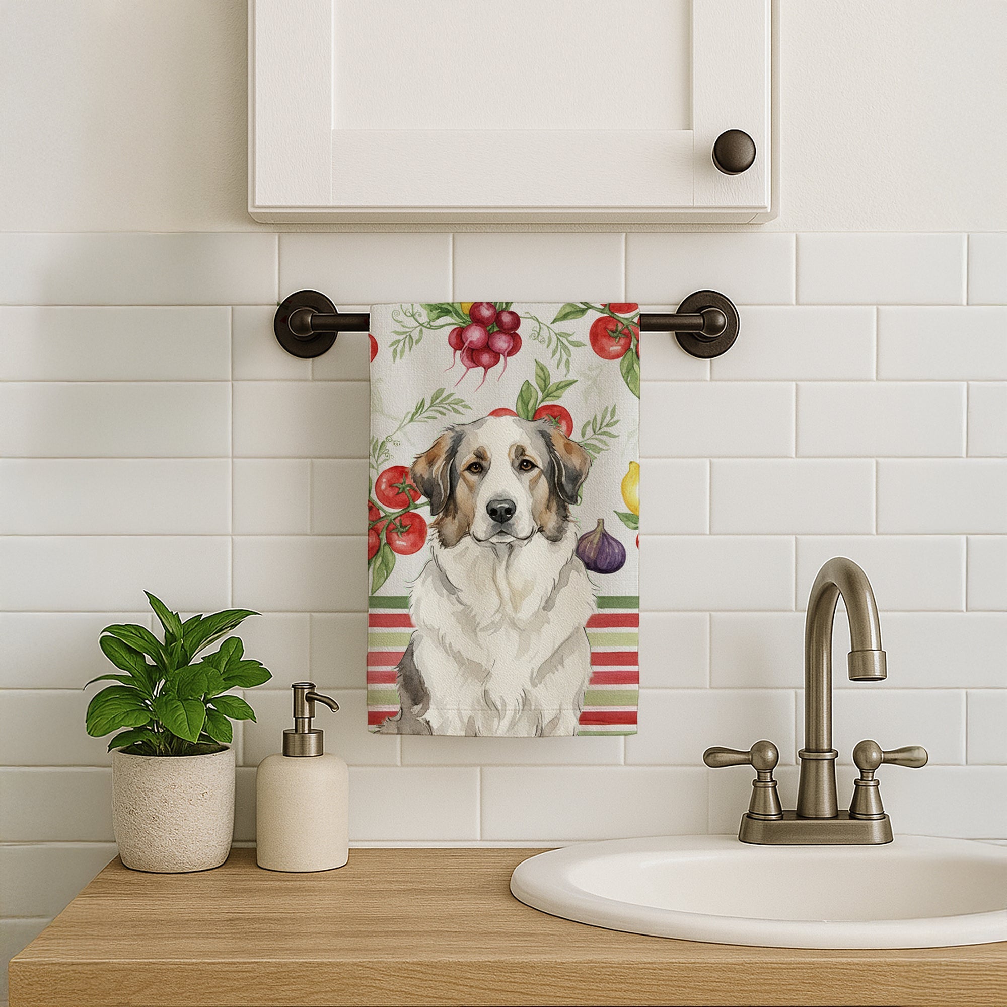 Kitchen Towel featuring breed specific Great Pyrenees artwork. Bring cozy everyday charm to your sink or powder room with a plush velour towel featuring original watercolor artwork. The front is a soft, color-rich minky polyester that polishes glassware to a brilliant shine; the back is 100% white cotton terry loop for quick absorbency on hands, dishes, and counters. Artwork is dyed into the fibers for lasting color that won’t crack or peel. Finished edges keep the shape wash after wash. Size: 15" x 25". Machine wash; tumble dry low. Designed and printed in the USA.
