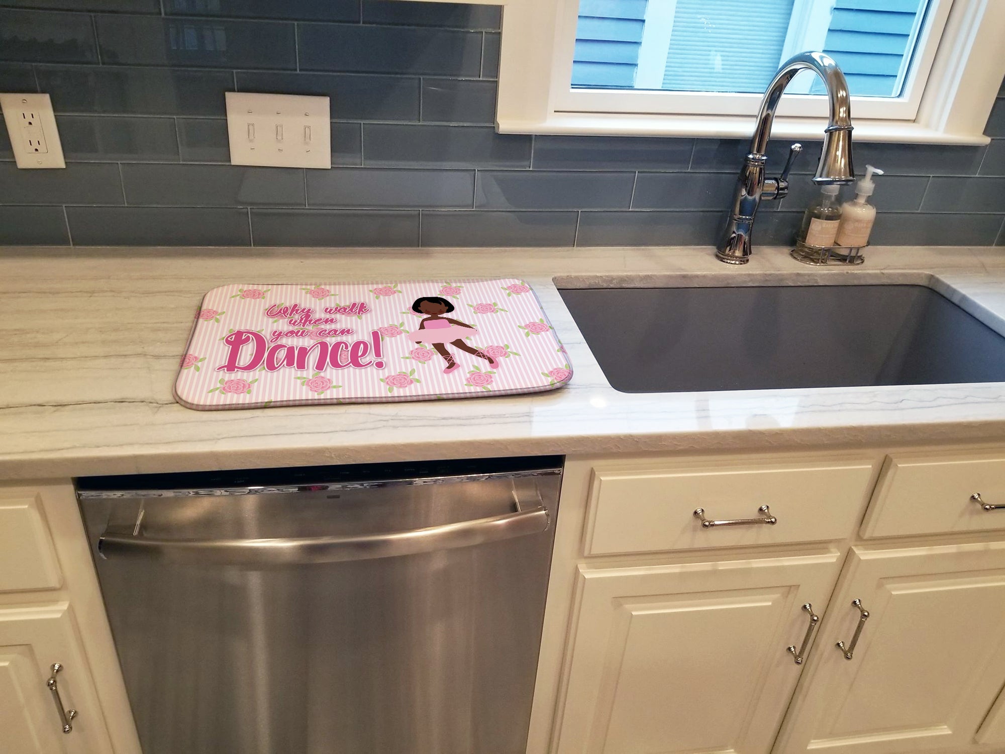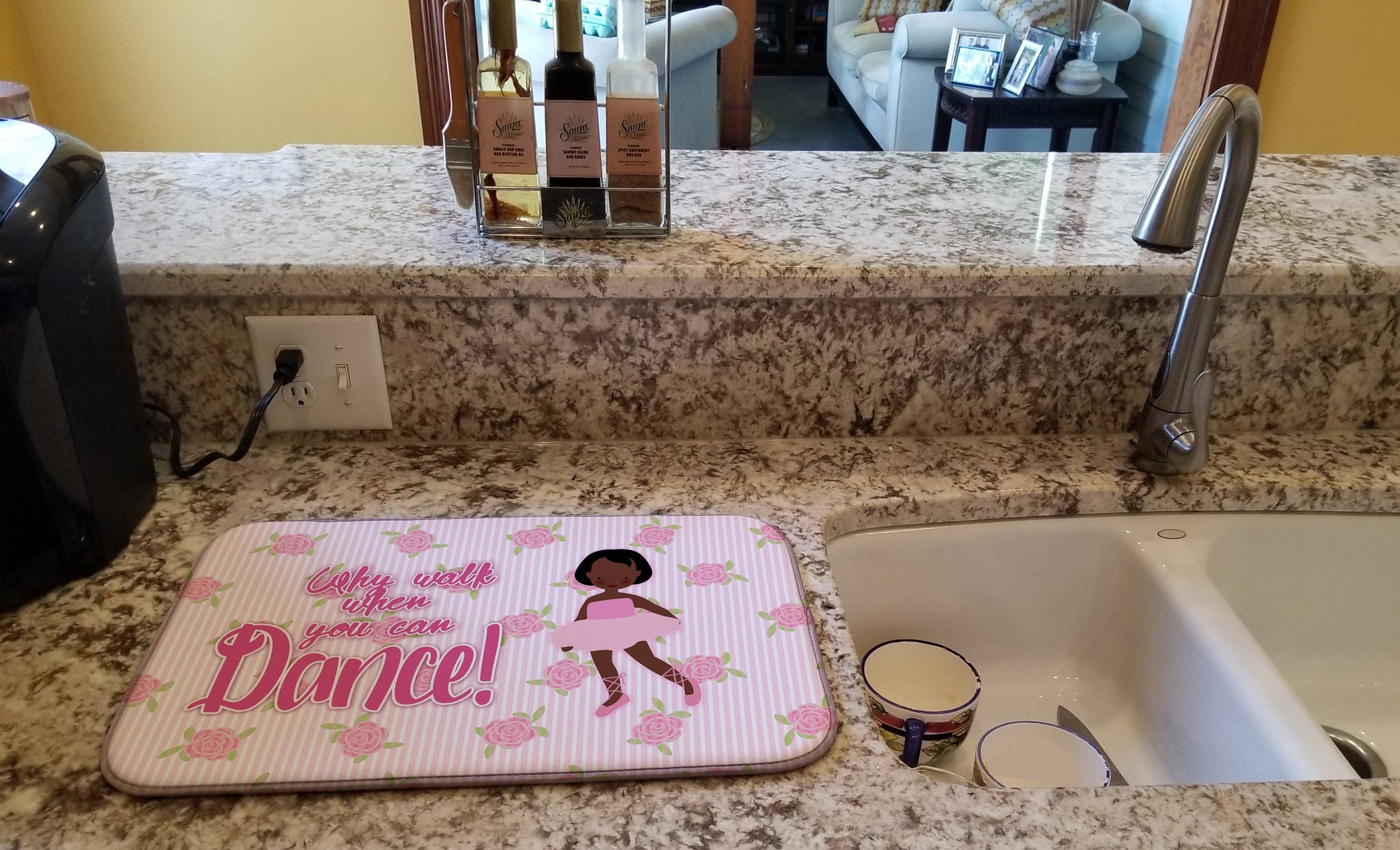 Say goodbye to messy countertops and soggy dish towels with our innovative dish drying mat. Our high-quality dish drying pad is designed to keep your countertops dry while offering a stylish and efficient solution. Whether you're air drying dishes, glasses, stemware, silverware, pots, pans, bottles, or even fruits and vegetables, our dish mat is the perfect choice. The 14 inches x 22 inches size fits most counters and dish drying racks, and the non-slip design ensures stability. Made with water-absorbent polyester and a polyurethane foam insert, our dish drying mat is not only functional but also durable. It's machine washable and printed in the USA for long-lasting use. The beautiful artwork adds flair to your kitchen decor, making it a perfect housewarming gift or present for any occasion. Upgrade your kitchen experience with our absorbent and versatile dish drying mat.