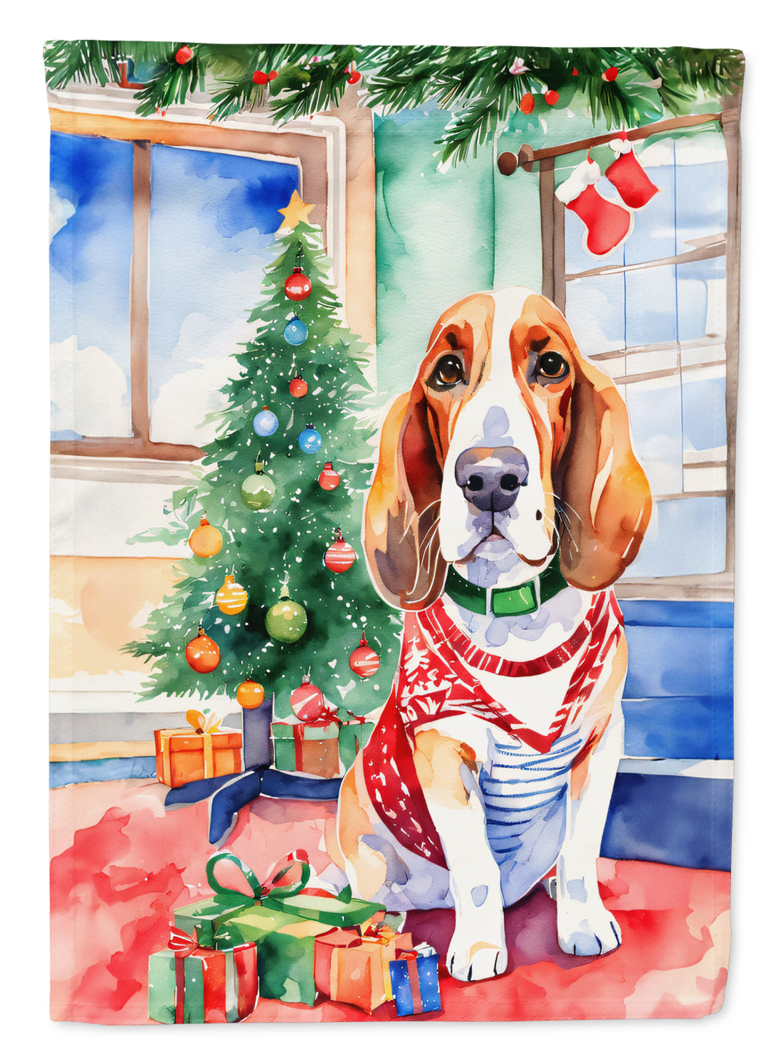 Decorate your space with our Christmas Basset Hound artwork on a Large Flag. Presenting our Heavy Duty Polyester House Size Decorative Sleeve Pole Flag, a vibrant addition to enhance the aesthetic appeal of your home. This large decorative flag, measuring approximately 28 x 40 inches, offers ample coverage and visibility. Each flag is meticulously sewn and made individually, ensuring a unique piece that may slightly vary in size. It's a sleeve pole flag, designed to fit a standard decorative flag pole effortlessly. Please note that the flag pole and bracket are not included and should be purchased separately. What sets our flag apart is its dual-sided print. The design is mirrored on both sides of the fabric, allowing for uniform visibility regardless of the angle. Printed in full color, our flag showcases vibrant hues that truly stand out. To ensure lasting vibrancy and durability, the dyes are heat-set into the fabric. This ensures your flag remains bright and captivating through various weather conditions. Elevate the look of your home with our Heavy Duty Polyester House Size Decorative Sleeve Pole Flag!