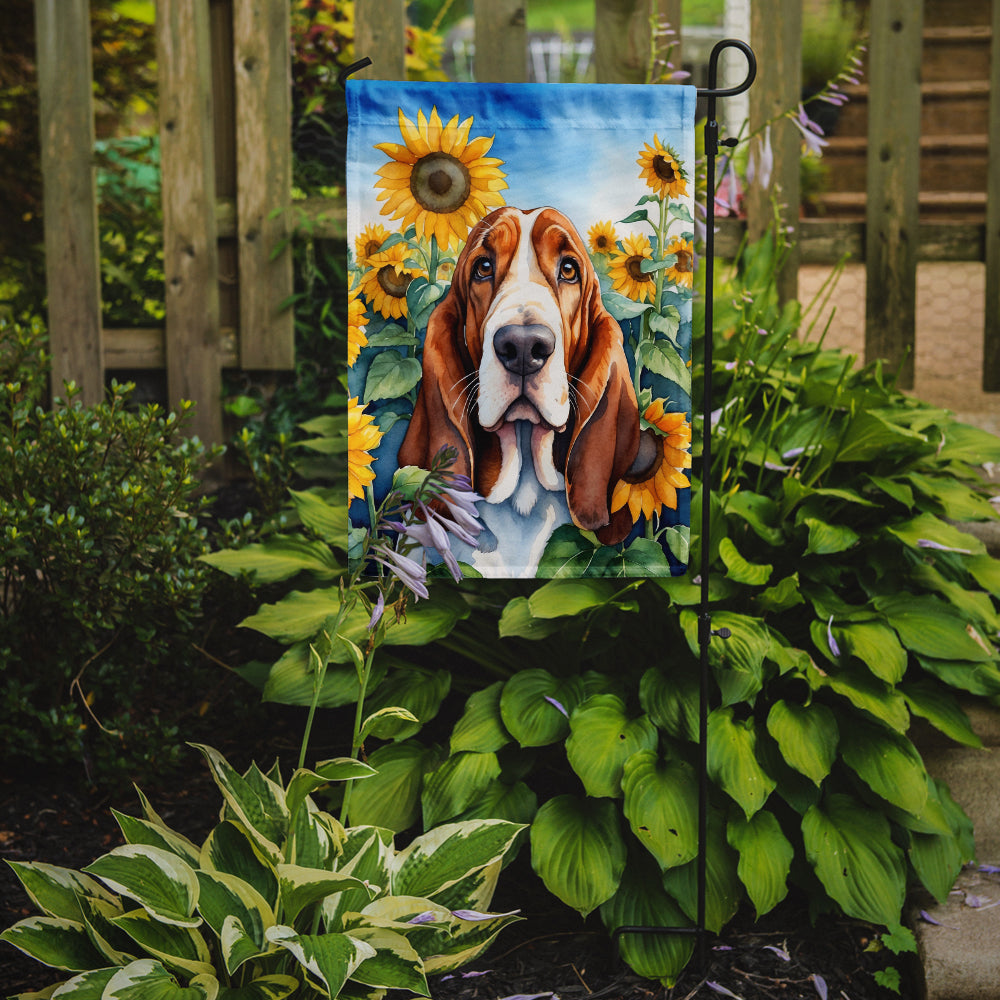 Basset Hound in Sunflowers Garden Flag – Bright Dog-Themed Yard Decor