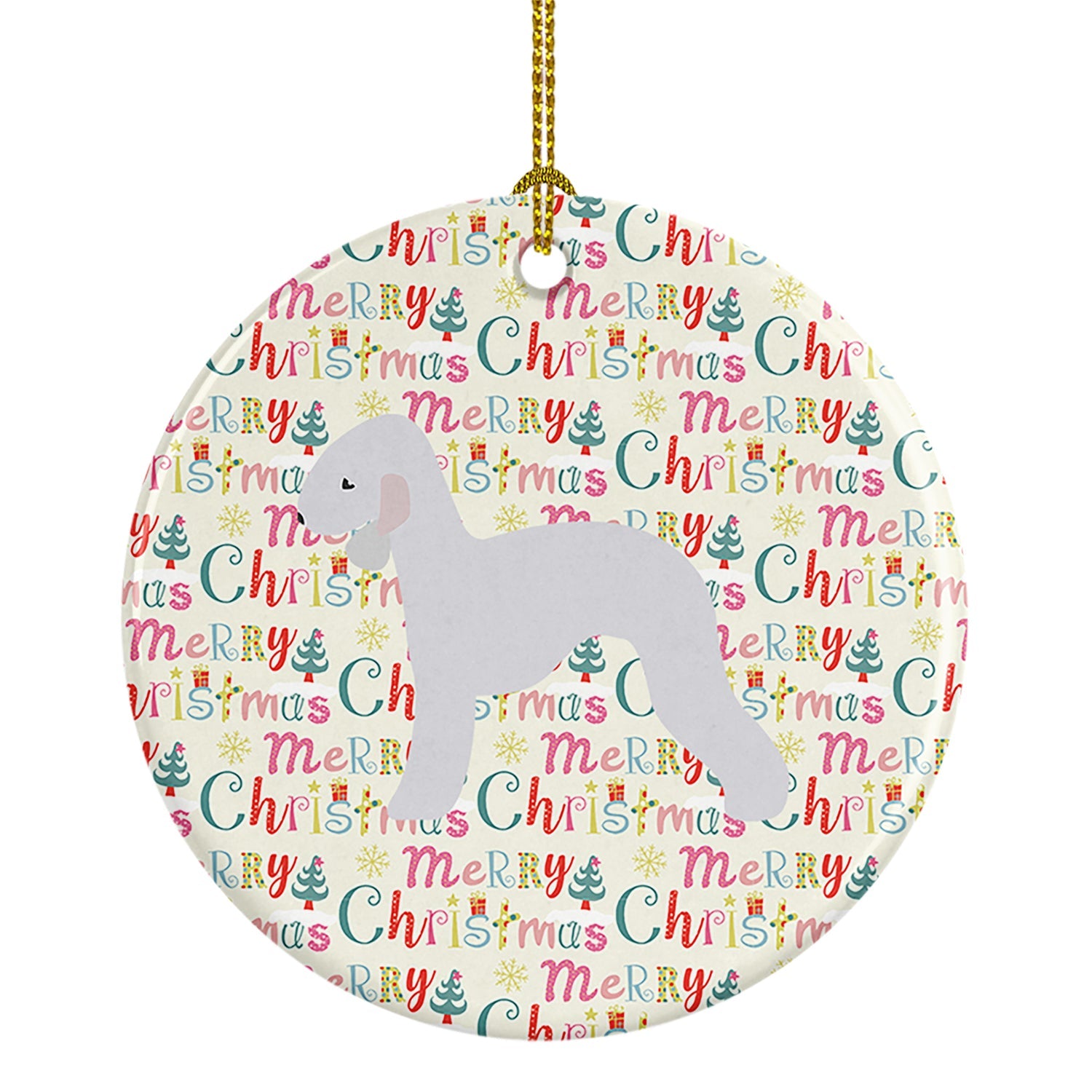 Decorate your space with our Bedlington Terrier artwork on a Ornament. Add a touch of personalized charm to your Christmas tree this holiday season with our Ceramic Ornament. Measuring 2.8125 inches in diameter, this round porcelain ornament beautifully reflects your festive lights, enhancing your holiday decor. The gloss surface sets off the vibrant, full-color artwork contributed by one of our talented artists, bringing a pop of color and joy to your tree. This Ceramic Ornament doesn't stop at being merely decorative. The white back is designed for personalization. Write a heartfelt message, mark a special year, or inscribe a date with a paint pen or a permanent marker to create a treasured memento. Please ensure you allow any personalization to dry thoroughly before handling to maintain the pristine finish. Included with the ornament is a delicate gold cord for easy hanging. Made in the USA, this Ceramic Ornament makes an exceptional gift for a pet sitter, teacher, family member, or anyone you wish to share a little Christmas magic with. With its blend of style, charm, and personal touch, it's a meaningful addition to any Christmas tree.
