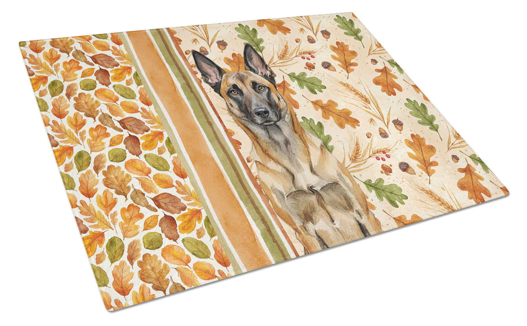 Glass Cutting Board featuring breed specific Belgian Malinois artwork. Celebrate Thanksgiving with this Thanksgiving Cutting Board. Introduce your kitchen to the vibrant, large Decorative Glass Cutting Board from Caroline's Treasures. Crafted from resilient tempered glass, this board is not only a utilitarian necessity but also a colorful art piece. With its generous dimensions of 15 inches in height and 12 inches in length, it offers ample space for all your cutting needs. Every piece showcases captivating artwork from distinguished artists, bringing an aesthetic edge to your kitchen. Beyond its attractive design, this cutting board ensures your countertop stays pristine and unscathed, owing to its heat-resistant properties. Engineered with user convenience in mind, it features non-skid feet for stability, and rounded corners for additional safety. Its robust construction renders it virtually unbreakable, guaranteeing longevity. The board comes with protective feet bumpers, maintaining its position during use. This product is recommended to be hand washed only. Proudly printed and assembled in the United States, this cutting board exemplifies superior craftsmanship. With Caroline's Treasures' Decorative Glass Cutting Board, you're investing in a blend of functionality and artistic flair.