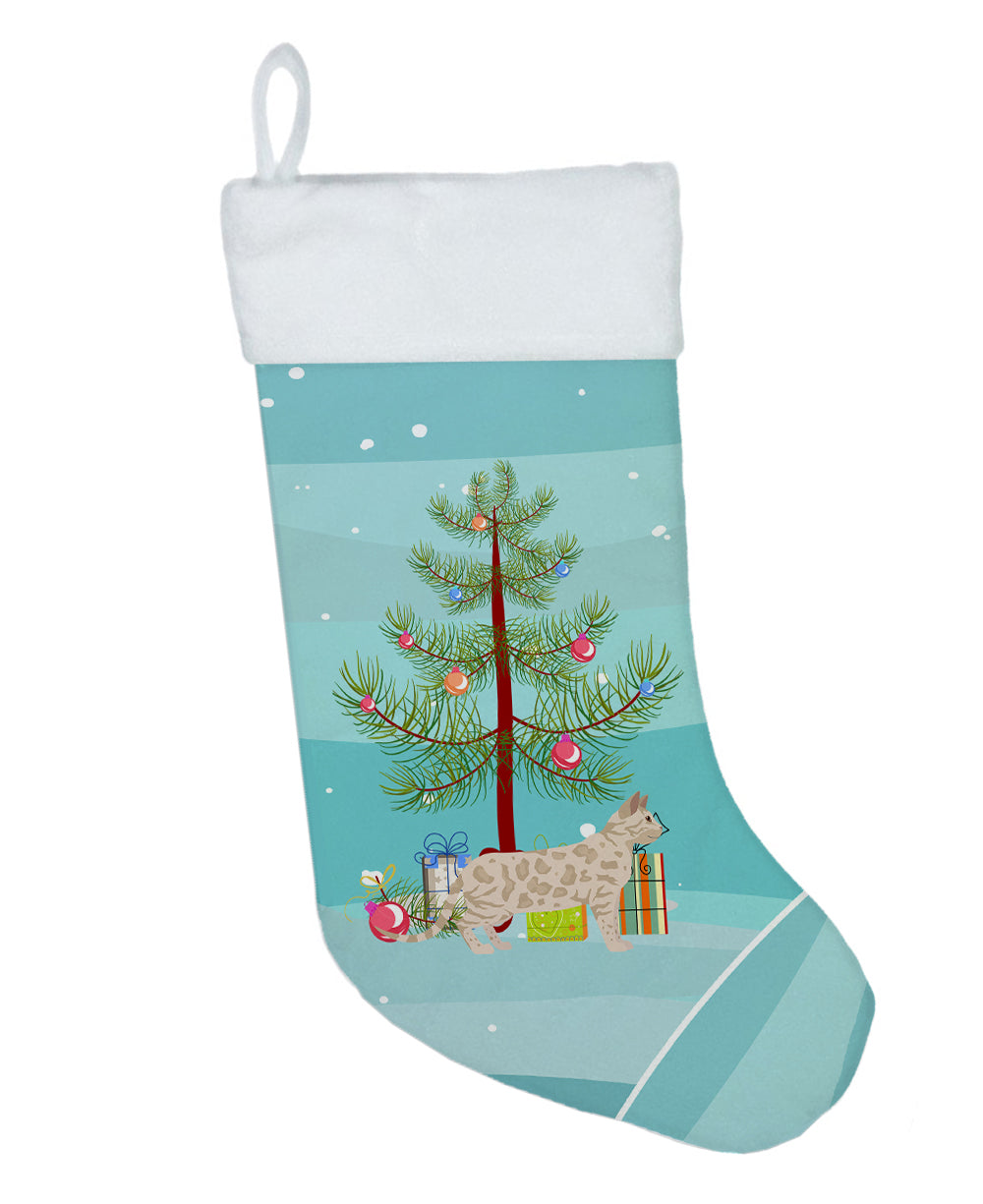 Decorate your space with our Christmas Bengal artwork on a Stocking. Bring the warmth of the festive season into your home with our luxurious Christmas Stocking. Designed to impress, this beautiful stocking is crafted from 100% polyester suede, delivering both superior softness and long-lasting durability. Measuring approximately 18 inches in height and 11 inches in width, it boasts generous space for a delightful assortment of Santa's gifts. What sets our Christmas Stocking apart is the exquisite design that is printed on both sides. Whether you hang it on the mantel or from a stocking hanger, the charming holiday print remains visible, adding a festive spirit to your décor from any direction. The stocking features a robust hanging tab that's crafted from the same suede fabric, guaranteeing secure hanging during the holiday excitement. An added bonus? This Christmas Stocking is completely machine washable. After the season's festivities, simply wash it, lay flat or hang to dry, and it's ready for the next holiday season. Proudly designed, printed and sewn in the United States, our stocking makes a stylish addition to your Christmas décor or a thoughtful gift for loved ones. Cherish the spirit of Christmas with our beautifully crafted, double-sided, easy-care stocking.