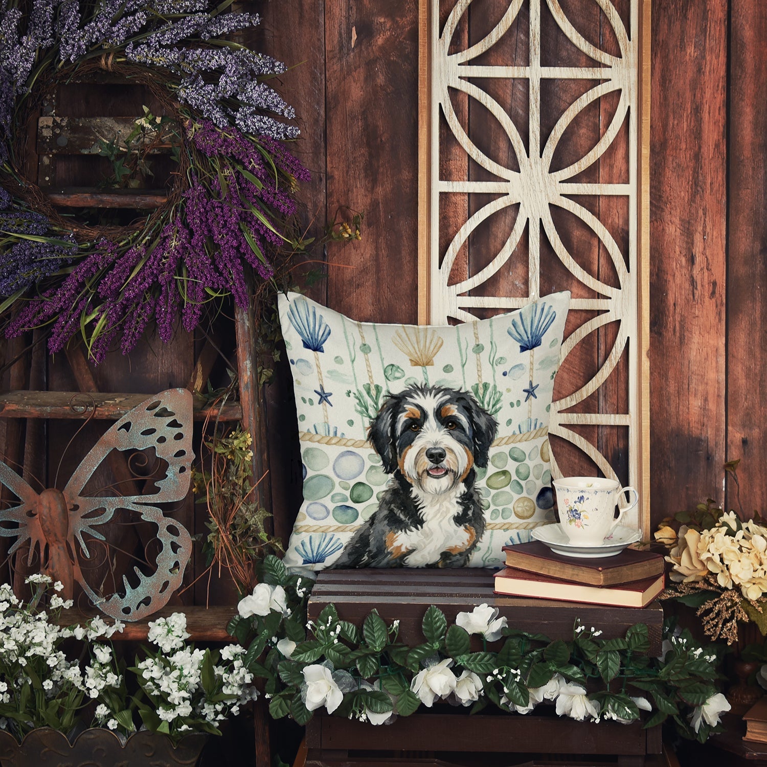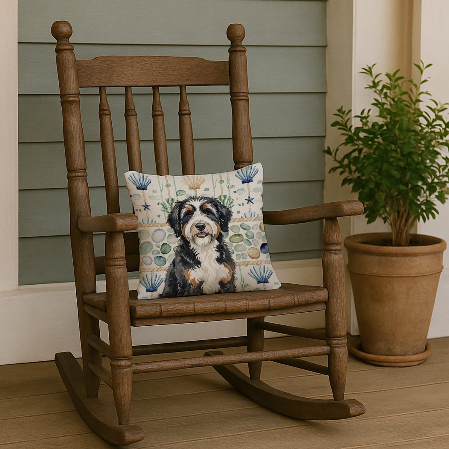 Throw Pillow featuring breed specific Berndoodle artwork. Add a touch of vibrancy and comfort to your outdoor seating with Caroline's Treasures Fabric Decorative Pillow. Measuring approximately 14 inches by 14 inches, this outdoor pillow is crafted to elevate the appeal of your patio furniture, infusing it with vivid color and artistic flair. The pillow includes a 100% Polyester Fabric sham filled with a quality pillow form to provide superior comfort. Innovatively made from our brand new material, specifically woven for its water resistance, this pillow is designed for durability. The soft canvas fabric offers versatility in use, fit for your indoor couch or your outdoor patio, porch, or veranda. The fabric is dyed with colorfast dyes built for resilience against weather conditions, ensuring the pillow retains its beauty over time. Constructed by sewing three fabric pieces to create a sham, the polyester insert is then nestled inside to form the pillow, resulting in an overstuffed pillow that maintains its shape. Both the sham and the pillow insert are proudly made in the United States. As the pillows are handcrafted, there may be minor variations in size, further enhancing their unique charm. Experience comfort in style with Caroline's Treasures Fabric Decorative Pillow.