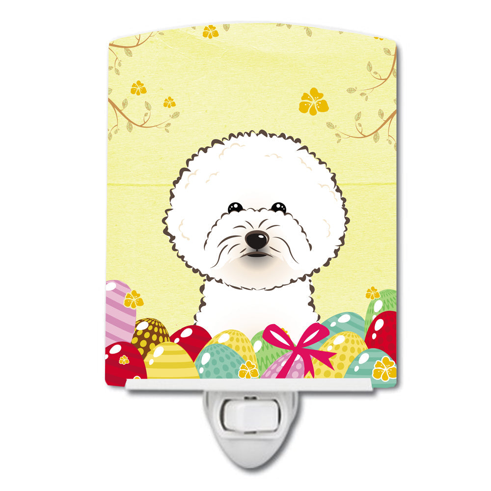 Decorate your space with our Easter Bichon Frise artwork on a Night Light. Introduce a splash of artistic flair and subtle illumination to your space with the Decorative Ceramic Night Light from Caroline's Treasures. Perfect for any room, this night light seamlessly blends functionality with an aesthetic appeal, offering a stylish solution to brighten up dark corners of your home or office. Boasting a six-inch high by four-inch wide ceramic tile at the front, it showcases vivid, full-color artwork from distinguished artists, transforming a simple utility into a vibrant art piece. The artwork is securely encased in a robust metal holder, ensuring durability and longevity. Two screws are provided to firmly affix the tile into the holder. The holder extends three inches deep, housing an included bulb that emits a soft, welcoming glow. This product meets all safety standards, as evidenced by its UL approval. Proudly made in the United States from imported components, this Decorative Ceramic Night Light is not just a functional device; it's a statement piece that enhances the ambiance of your surroundings.