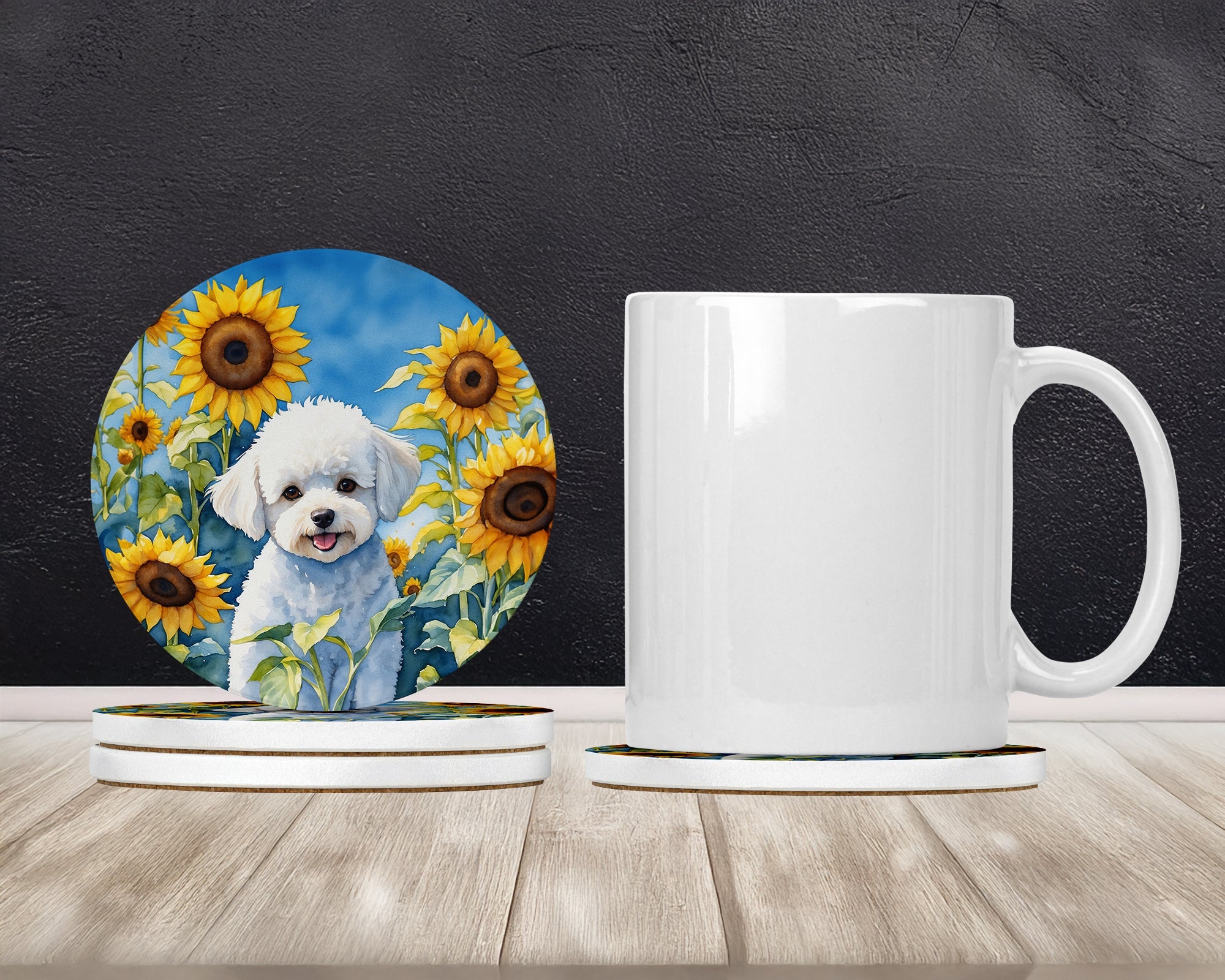Bichon Frise in Sunflowers Large Sandstone Coasters Pack of 4