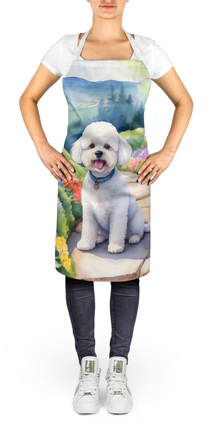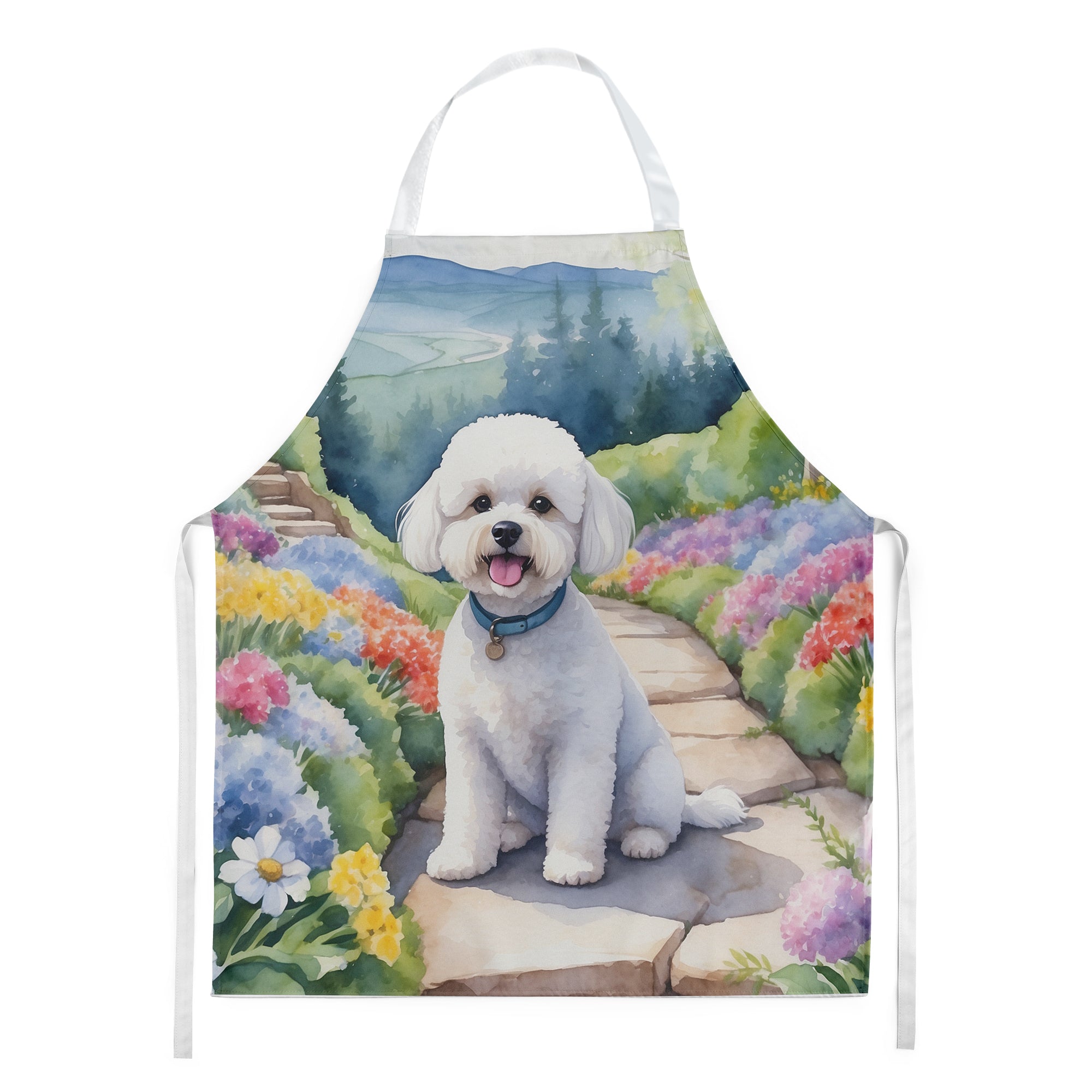 Decorate your space with our Bichon Frise artwork on a Apron. Bring a bit of Spring into your home with a Spring Apron. Elevate your cooking, baking, and grilling experiences with our versatile Kitchen or BBQ Apron. This Bib Style apron isn't just limited to culinary activities - it also serves as an excellent baking apron, artist apron, server apron, gardening apron, or even a dog grooming apron. The apron showcases vibrant full-color artwork contributed by one of our talented artists, bringing a dash of style to your daily tasks. With dimensions of approximately 27"W x 30"H, it provides ample coverage to protect your clothing from spills and splashes. Our apron is meticulously crafted from 100% Ultra Spun Polyester, known for its durability and lightweight nature. The apron comes with white tie straps, ensuring a comfortable and adjustable fit for all. It's a perfect choice for kitchen apron enthusiasts, whether you are a woman or a man. Designed for easy maintenance, this apron is fully machine washable. The quick-drying polyester material actively reduces staining, keeping your apron looking fresh and new for longer. Our beautifully designed apron isn't just a functional kitchen accessory - it's a fashion statement in the culinary world!
