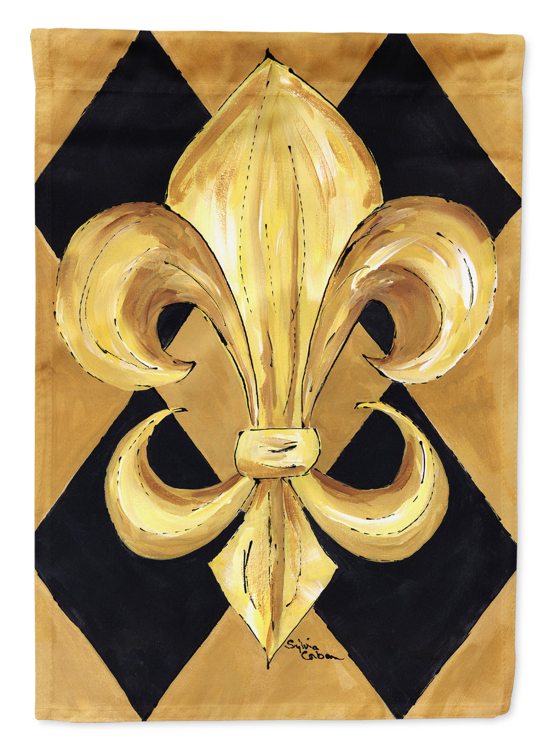 Black and Gold Fleur de lis New Orleans  Flag Canvas House Size