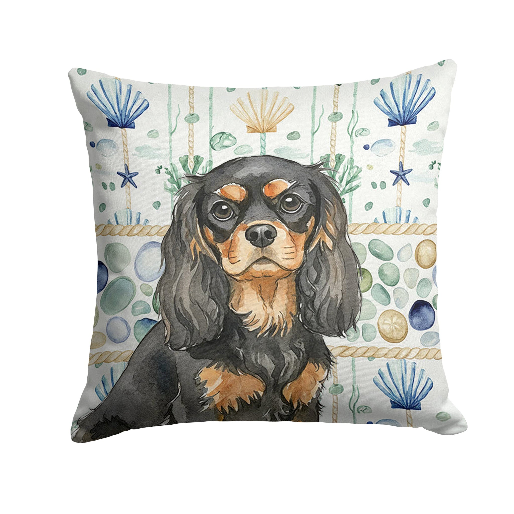 Throw Pillow featuring breed specific Cavalier King Charles Spaniel artwork. Revitalize your outdoor or indoor living space with Caroline's Treasures 18x18 Fabric Decorative Pillow. With a generously sized dimension of approximately 18 inches by 18 inches, this pillow makes a comfortable and aesthetic addition to any seating area. Made from a unique, water-resistant material developed by Caroline's Treasures, the pillow sham is 100% polyester fabric that's durable and ready to weather any condition. Its vibrant, full-color artwork will not fade over time as it is dyed with color-fast dyes. Whether you place it on your patio furniture, porch, veranda, or indoor couch, its soft canvas fabric ensures a cozy experience. The pillow is handcrafted in the United States, featuring a sham created from three pieces of fabric and a polyester insert for enduring shape and overstuffed comfort. Despite being robustly built to endure the outdoors, it is as soft and snug as your favorite indoor cushions. Please note, as all our pillows are handmade, sizes may vary slightly, adding to the charm of this unique decorative item.