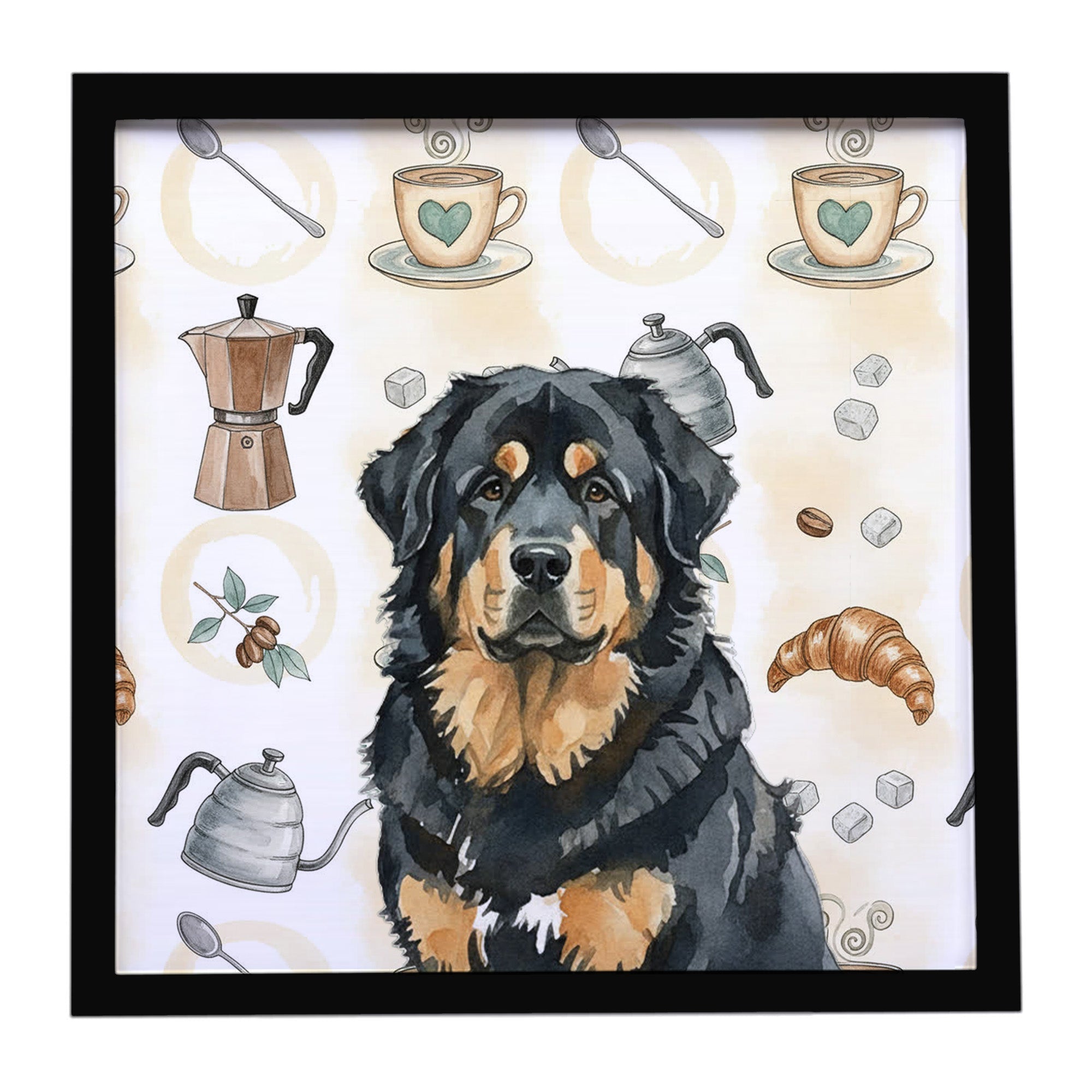 Framed Metal Print featuring breed specific Tibetan Mastiff artwork. Looking for wall art that’s stylish, safe, and made to last? Our 8x8 Framed Metal Prints are designed with modern living in mind. Each piece features original artwork printed on durable aluminum, set in a sleek frame that measures 3/4 inch deep for a clean, contemporary finish. Unlike glass prints, these are lightweight, shatter-free, and family-safe. Perfect for kitchens, bathrooms, or covered porches where traditional décor might not hold up. The built-in sawtooth hanger molded into the back makes it easy to hang right out of the box—just use your own nails or screws. Cleaning is simple too: a quick wipe with a damp cloth and mild soap keeps your artwork looking vibrant. Proudly made in Alabama, every print supports our community of artists while adding personality and charm to your home.