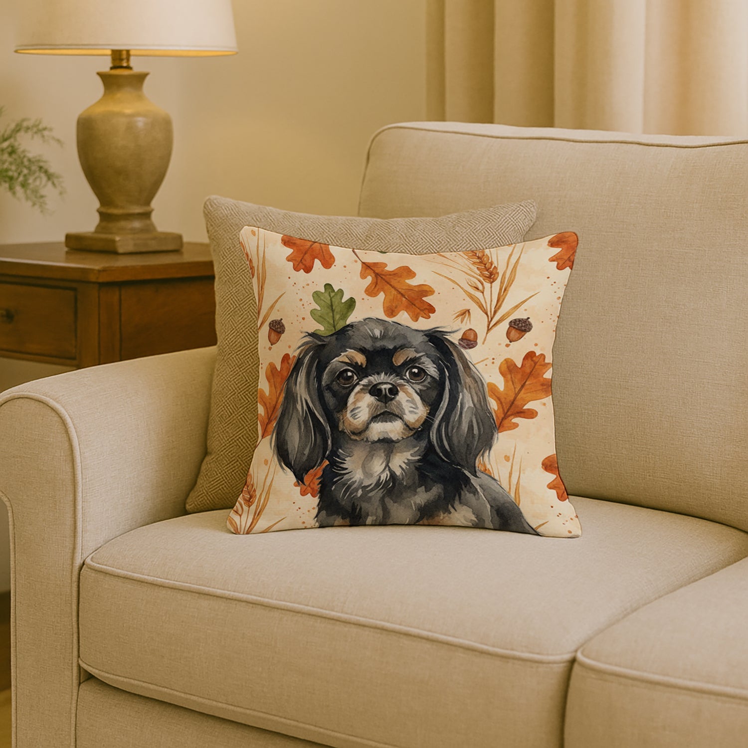 Throw Pillow featuring breed specific Tibetan Spaniel artwork. Celebrate Thanksgiving with this Thanksgiving Pillow. Revitalize your outdoor or indoor living space with Caroline's Treasures 18x18 Fabric Decorative Pillow. With a generously sized dimension of approximately 18 inches by 18 inches, this pillow makes a comfortable and aesthetic addition to any seating area. Made from a unique, water-resistant material developed by Caroline's Treasures, the pillow sham is 100% polyester fabric that's durable and ready to weather any condition. Its vibrant, full-color artwork will not fade over time as it is dyed with color-fast dyes. Whether you place it on your patio furniture, porch, veranda, or indoor couch, its soft canvas fabric ensures a cozy experience. The pillow is handcrafted in the United States, featuring a sham created from three pieces of fabric and a polyester insert for enduring shape and overstuffed comfort. Despite being robustly built to endure the outdoors, it is as soft and snug as your favorite indoor cushions. Please note, as all our pillows are handmade, sizes may vary slightly, adding to the charm of this unique decorative item.