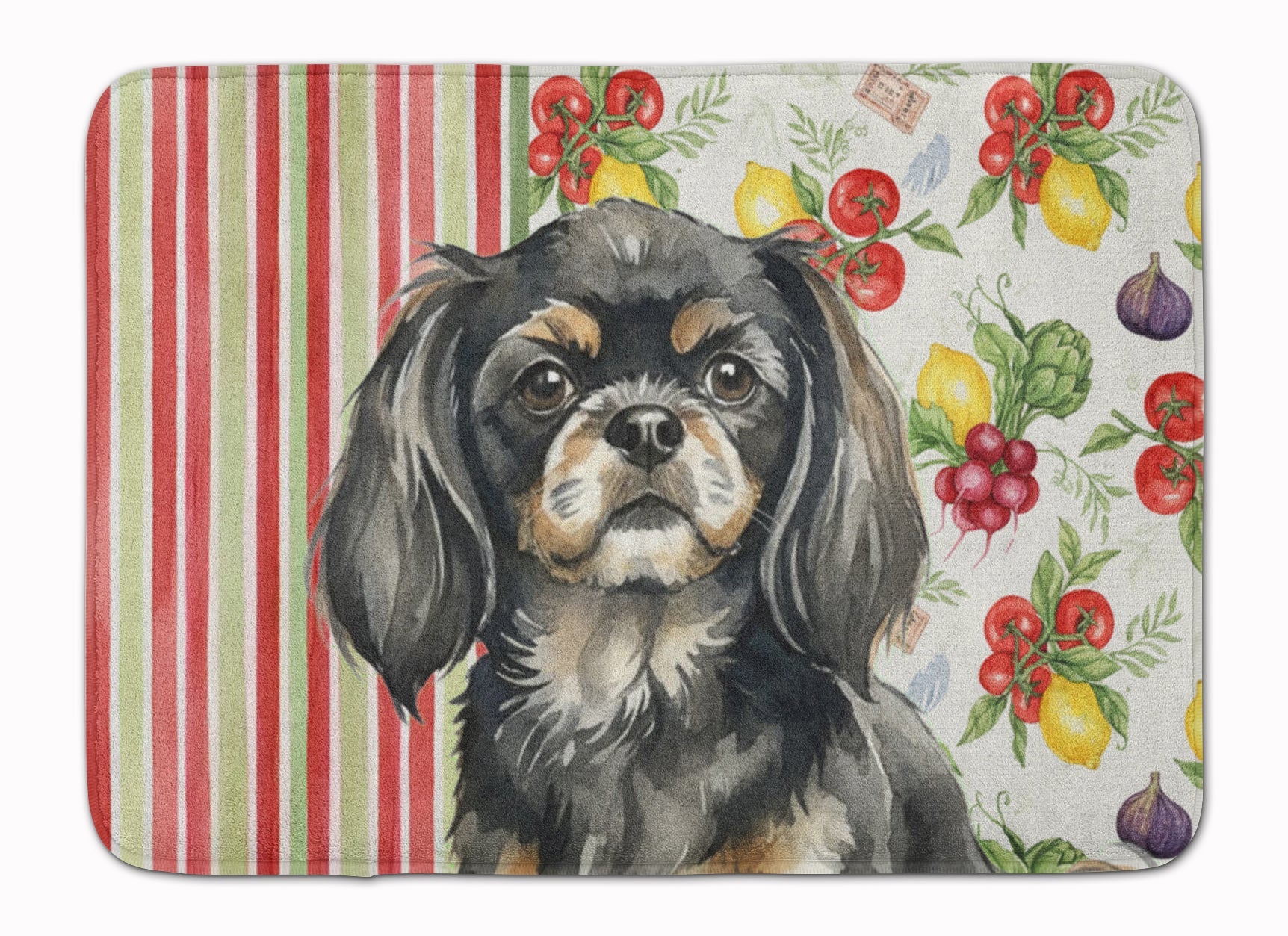 Shown here is the Black and Tan Tibetan Spaniel Vegetables Memory Foam Kitchen Mat from Caroline's Treasures featuring artwork of a Tibetan Spaniel in a Everyday design. The detailed illustration and vibrant colors make it a standout accent that celebrates both seasonal style and love for the subject. This image features a vibrant watercolor vegetable pattern with tomatoes, lemons, artichokes, figs, radishes, and leafy greens arranged in a repeating design, paired with classic red and green stripes. The bright, garden-fresh palette creates a cheerful, farmhouse-inspired look that feels lively, welcoming, and perfect for kitchen décor. Everyday décor celebrates personal style and the small moments that make a house feel like home. Thoughtful designs add warmth and personality that can be enjoyed year-round. Transform your floor into a work of art with Caroline's Treasures' Memory Foam Mat. This mat offers not only a stunning visual appeal but also a luxurious, plush feel that's incredibly comfortable to the touch. It's a versatile, machine-washable mat designed for both bath and kitchen use, ensuring you experience the best in comfort and convenience. Care Instructions: Maintaining this memory foam mat is a breeze. Simply follow the care instructions on the product tag. It's recommended to wash in cold water and dry on a low-temperature setting in the dryer. This ensures the mat retains its quality and longevity, allowing you to enjoy its beauty and comfort for a long time. Caroline's Treasures' Memory Foam Mat Machine Washable is the perfect blend of artistry, comfort, and practicality, making it a standout addition to any space. Upgrade your home decor with this versatile and stylish mat today. Tibetan Spaniels are small companion dogs known for their intelligence and alert nature. This breed is cherished for its loyalty, independence, and affectionate personality. Makes a heartfelt gift for: Tibetan Spaniel owners, Dogs lovers, Everyday gifts, pet parents, friends who adore their Tibetan Spaniel, or anyone celebrating Dogs.