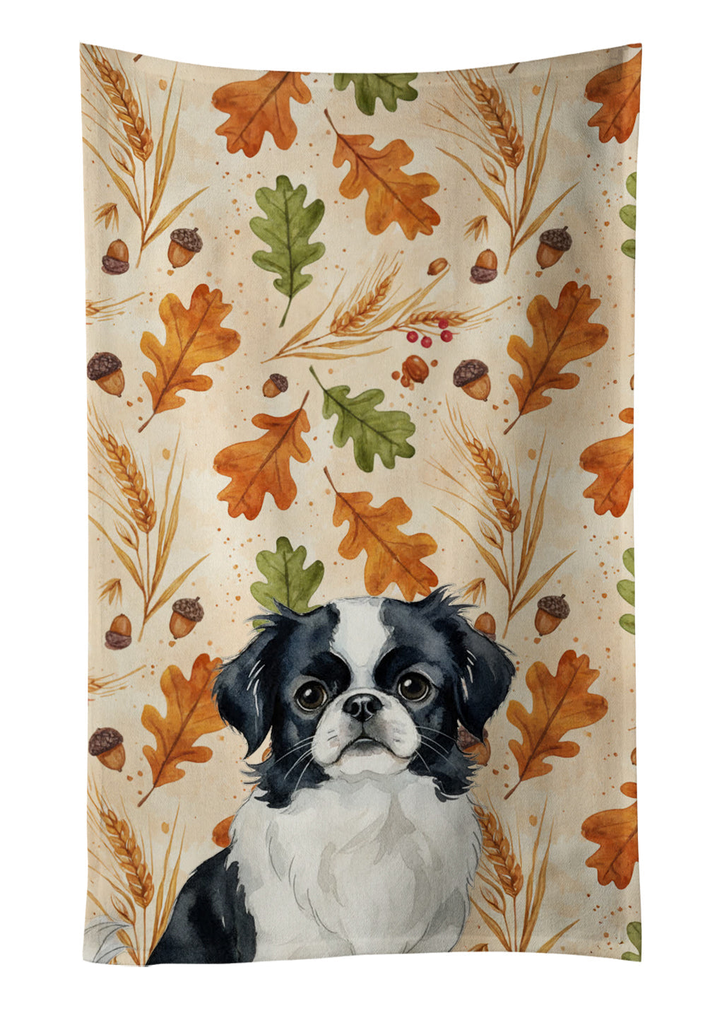 Kitchen Towel featuring breed specific Japanese Chin artwork. Celebrate Thanksgiving with this Thanksgiving Kitchen Towel. Bring cozy fall charm to your sink or powder room with a plush velour towel featuring original watercolor artwork. The front is a soft, color-rich minky polyester that polishes glassware to a brilliant shine; the back is 100% white cotton terry loop for quick absorbency on hands, dishes, and counters. Artwork is dyed into the fibers for lasting color that won’t crack or peel. Finished edges keep the shape wash after wash. Size: 15" x 25". Machine wash; tumble dry low. Designed and printed in the USA.