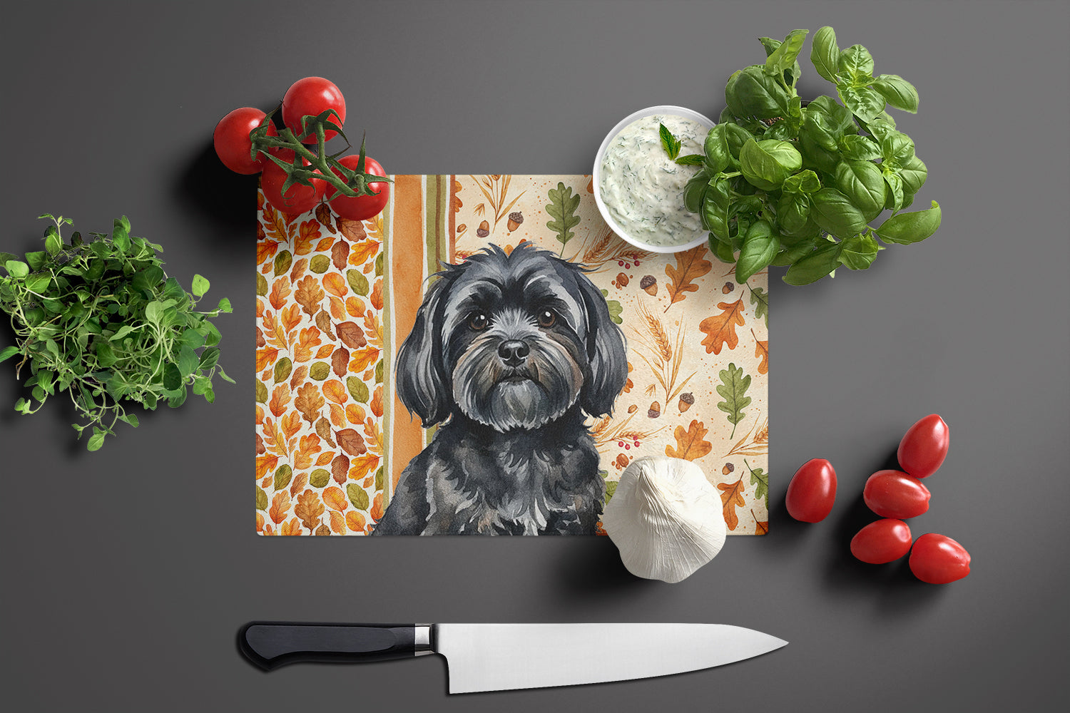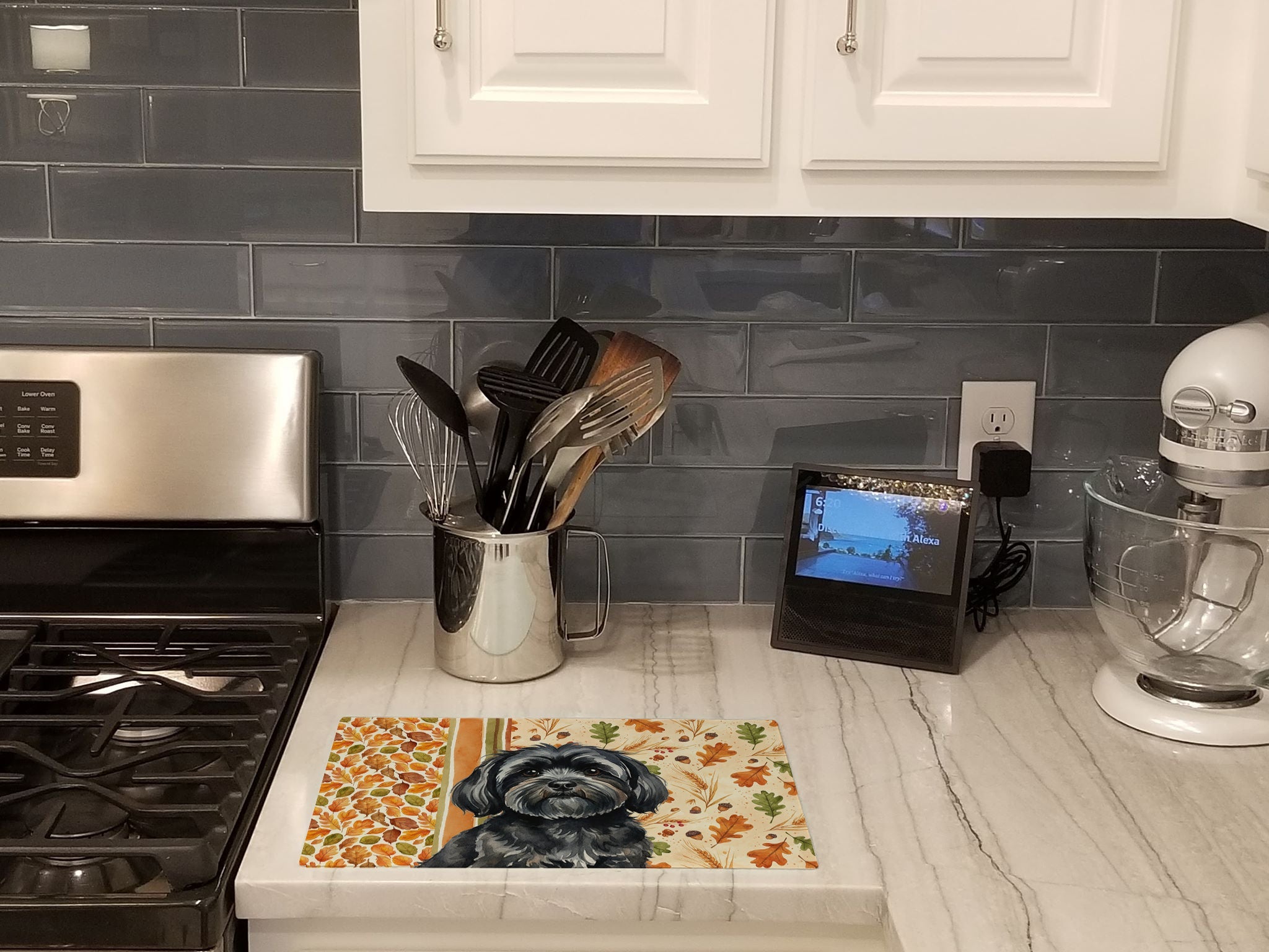 Glass Cutting Board featuring breed specific Lhasa Apso artwork. Celebrate Thanksgiving with this Thanksgiving Cutting Board. Introduce your kitchen to the vibrant, large Decorative Glass Cutting Board from Caroline's Treasures. Crafted from resilient tempered glass, this board is not only a utilitarian necessity but also a colorful art piece. With its generous dimensions of 15 inches in height and 12 inches in length, it offers ample space for all your cutting needs. Every piece showcases captivating artwork from distinguished artists, bringing an aesthetic edge to your kitchen. Beyond its attractive design, this cutting board ensures your countertop stays pristine and unscathed, owing to its heat-resistant properties. Engineered with user convenience in mind, it features non-skid feet for stability, and rounded corners for additional safety. Its robust construction renders it virtually unbreakable, guaranteeing longevity. The board comes with protective feet bumpers, maintaining its position during use. This product is recommended to be hand washed only. Proudly printed and assembled in the United States, this cutting board exemplifies superior craftsmanship. With Caroline's Treasures' Decorative Glass Cutting Board, you're investing in a blend of functionality and artistic flair.