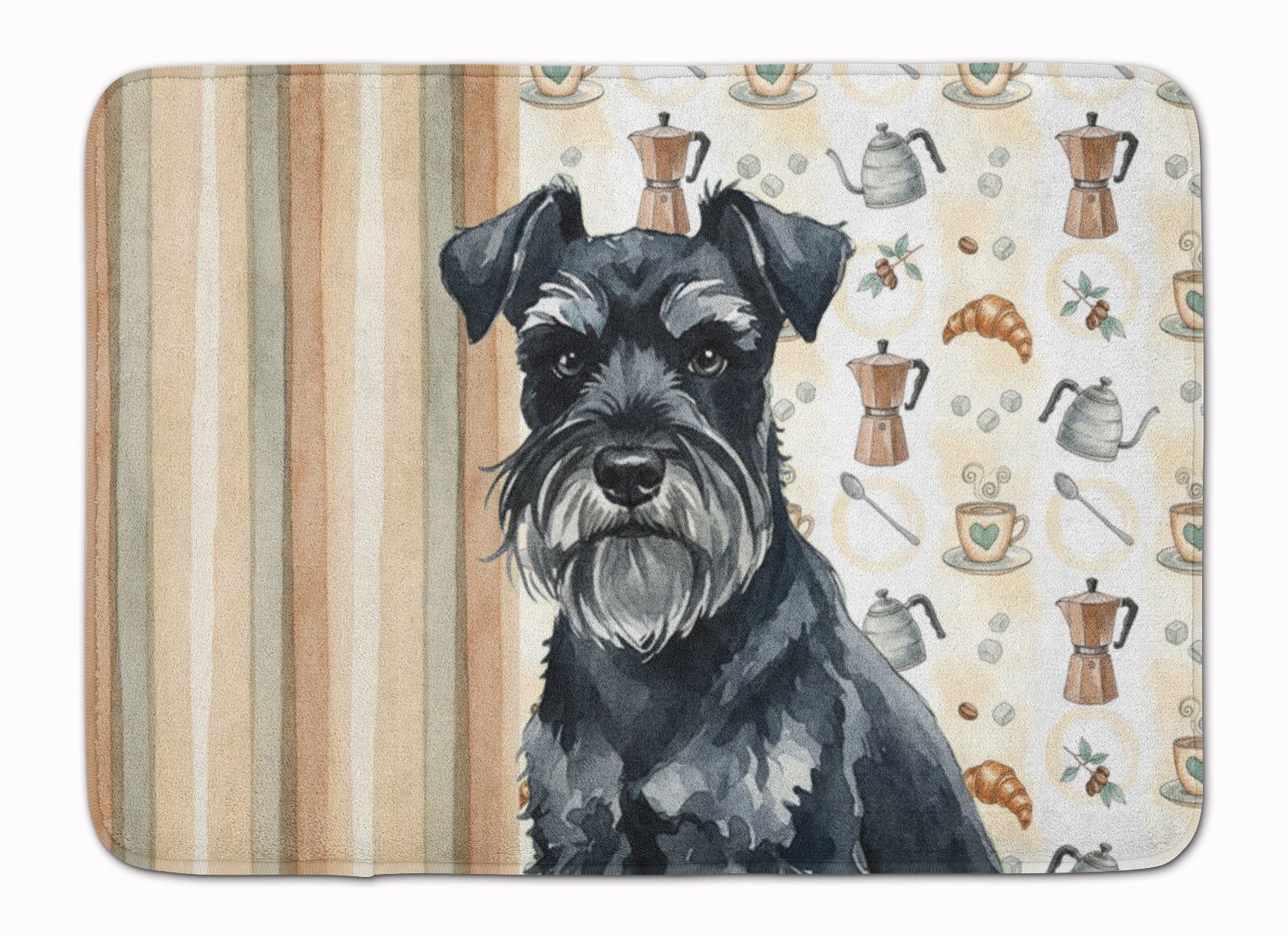 Shown here is the Black Miniature Schnauzer Coffee Bar Memory Foam Kitchen Mat from Caroline's Treasures featuring artwork of a Miniature Schnauzer in a Everyday design. The detailed illustration and vibrant colors make it a standout accent that celebrates both seasonal style and love for the subject. This image features a cozy watercolor coffee-themed pattern with illustrated mugs, moka pots, kettles, croissants, coffee beans, and sugar cubes arranged in a repeating design. Soft neutral tones with warm browns, creams, and subtle sage accents create an inviting, café-inspired look that feels comforting and relaxed. Everyday décor celebrates personal style and the small moments that make a house feel like home. Thoughtful designs add warmth and personality that can be enjoyed year-round. Transform your floor into a work of art with Caroline's Treasures' Memory Foam Mat. This mat offers not only a stunning visual appeal but also a luxurious, plush feel that's incredibly comfortable to the touch. It's a versatile, machine-washable mat designed for both bath and kitchen use, ensuring you experience the best in comfort and convenience. Care Instructions: Maintaining this memory foam mat is a breeze. Simply follow the care instructions on the product tag. It's recommended to wash in cold water and dry on a low-temperature setting in the dryer. This ensures the mat retains its quality and longevity, allowing you to enjoy its beauty and comfort for a long time. Caroline's Treasures' Memory Foam Mat Machine Washable is the perfect blend of artistry, comfort, and practicality, making it a standout addition to any space. Upgrade your home decor with this versatile and stylish mat today. Miniature Schnauzers display wiry coats and expressive faces. Their appearance feels alert and spirited. Makes a heartfelt gift for: Miniature Schnauzer owners, Dogs lovers, Everyday gifts, pet parents, friends who adore their Miniature Schnauzer, or anyone celebrating Dogs.