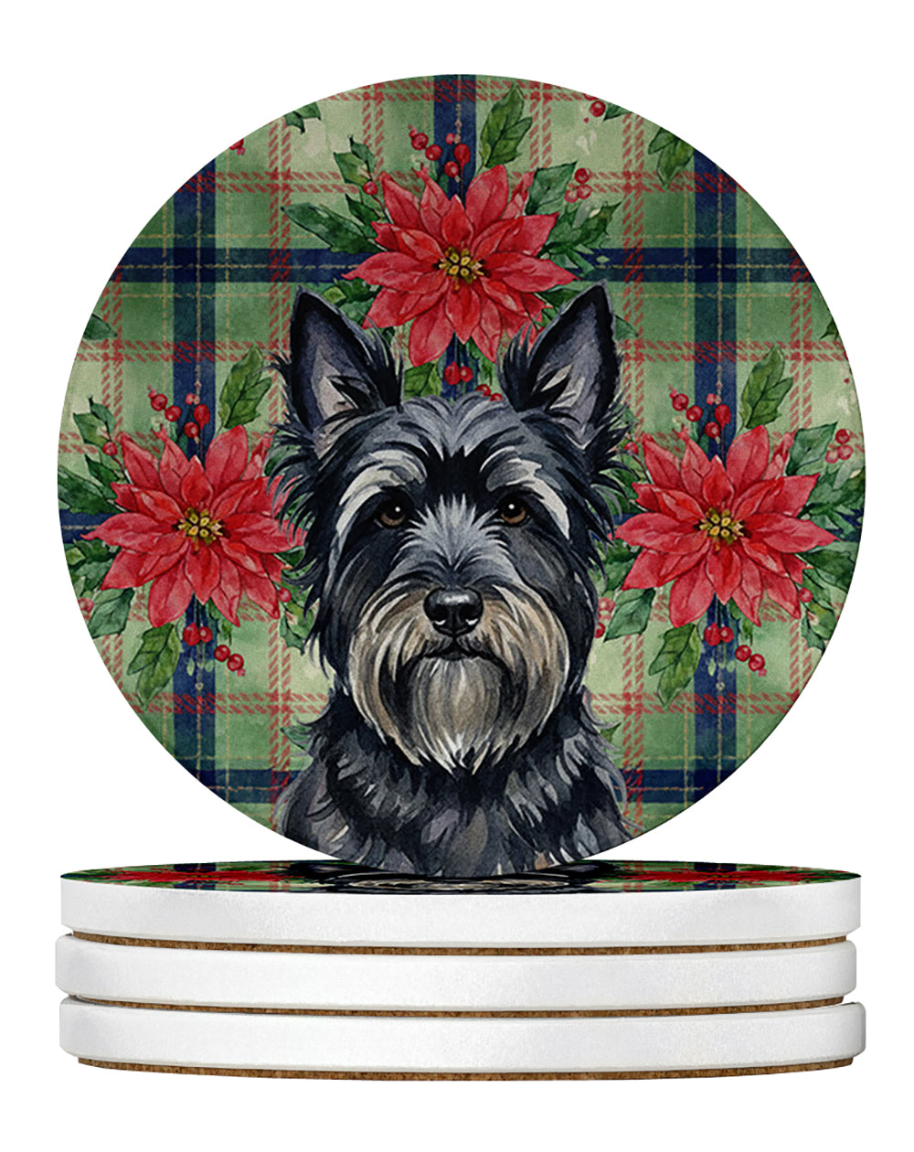 Large Sandstone Coasters Pack of 4 featuring breed specific Skye Terrier artwork. Celebrate Christmas with this Christmas Sandstone Coasters Pack of 4. Introducing Caroline's Treasures Large Sandstone Coasters Pack of 4, the perfect addition to your home decor. Each coaster measures nearly 4 inches and is made from absorbent sandstone with a cork backing. Designed and printed in the United States, these coasters feature artwork from Caroline's Treasures' talented artists. Protect your countertops and tables from hot and cold drink condensation with these absorbent coasters. They efficiently absorb moisture, ensuring your surfaces stay dry and clean. Choose from a wide range of designs to update and enhance your decor or give them as a thoughtful gift for any occasion. Cleaning is a breeze�simply wipe the coaster with a damp towel to remove any spills or stains. Each set comes in a brown gift box, making it ready to be wrapped for that special person in your life. These absorbent sandstone coasters also make an excellent housewarming gift, providing both practicality and style. Celebrate birthdays, Mother's Day, Father's Day, Thanksgiving, Christmas, Teacher's Appreciation Day, or simply show someone you care with these versatile and charming coasters. Caroline's Treasures Large Sandstone Coasters Pack of 4 is the perfect happy gift for any occasion.