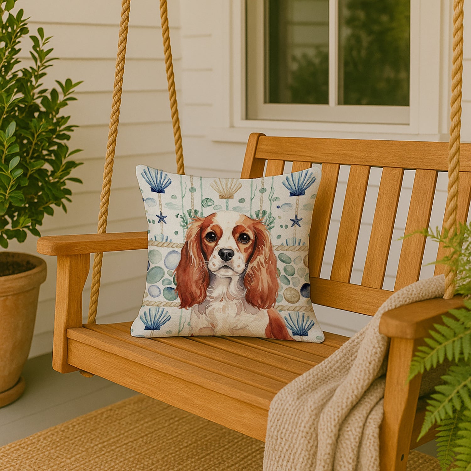 Throw Pillow featuring breed specific English Toy Spaniel artwork. Revitalize your outdoor or indoor living space with Caroline's Treasures 18x18 Fabric Decorative Pillow. With a generously sized dimension of approximately 18 inches by 18 inches, this pillow makes a comfortable and aesthetic addition to any seating area. Made from a unique, water-resistant material developed by Caroline's Treasures, the pillow sham is 100% polyester fabric that's durable and ready to weather any condition. Its vibrant, full-color artwork will not fade over time as it is dyed with color-fast dyes. Whether you place it on your patio furniture, porch, veranda, or indoor couch, its soft canvas fabric ensures a cozy experience. The pillow is handcrafted in the United States, featuring a sham created from three pieces of fabric and a polyester insert for enduring shape and overstuffed comfort. Despite being robustly built to endure the outdoors, it is as soft and snug as your favorite indoor cushions. Please note, as all our pillows are handmade, sizes may vary slightly, adding to the charm of this unique decorative item.