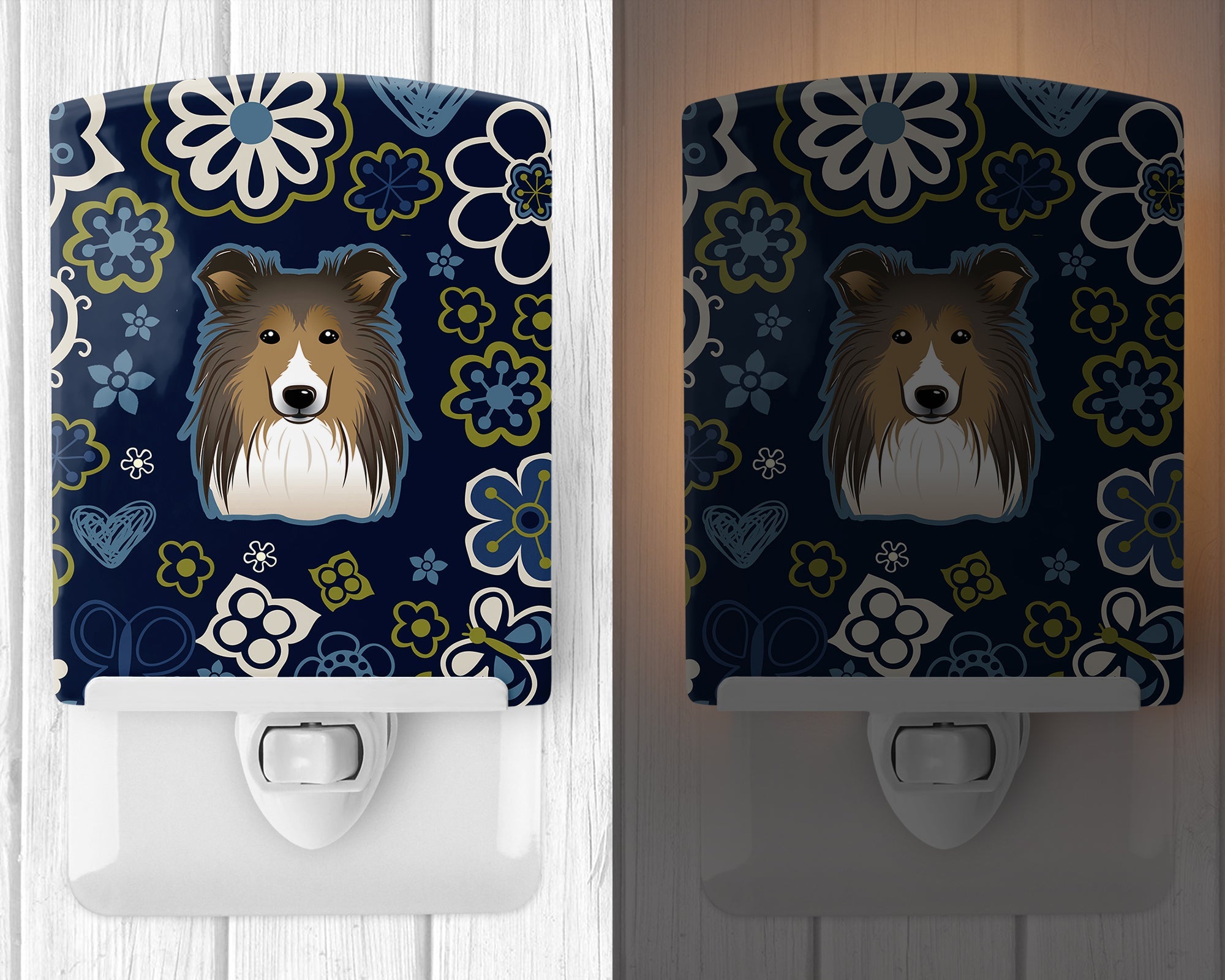 Blue Flowers Sheltie Ceramic Night Light BB5093CNL