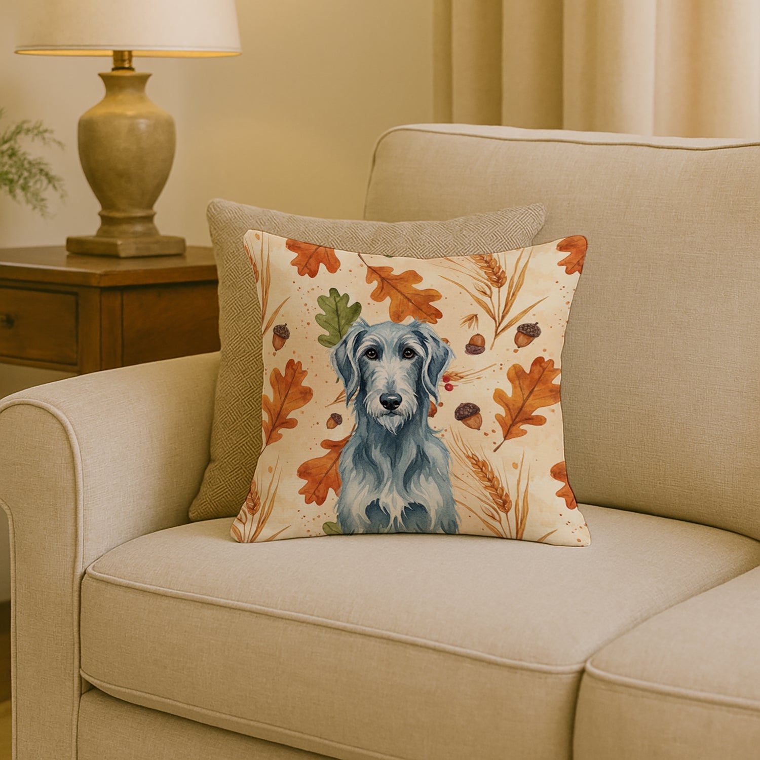 Throw Pillow featuring breed specific Scottish Deerhound artwork. Celebrate Thanksgiving with this Thanksgiving Pillow. Revitalize your outdoor or indoor living space with Caroline's Treasures 18x18 Fabric Decorative Pillow. With a generously sized dimension of approximately 18 inches by 18 inches, this pillow makes a comfortable and aesthetic addition to any seating area. Made from a unique, water-resistant material developed by Caroline's Treasures, the pillow sham is 100% polyester fabric that's durable and ready to weather any condition. Its vibrant, full-color artwork will not fade over time as it is dyed with color-fast dyes. Whether you place it on your patio furniture, porch, veranda, or indoor couch, its soft canvas fabric ensures a cozy experience. The pillow is handcrafted in the United States, featuring a sham created from three pieces of fabric and a polyester insert for enduring shape and overstuffed comfort. Despite being robustly built to endure the outdoors, it is as soft and snug as your favorite indoor cushions. Please note, as all our pillows are handmade, sizes may vary slightly, adding to the charm of this unique decorative item.