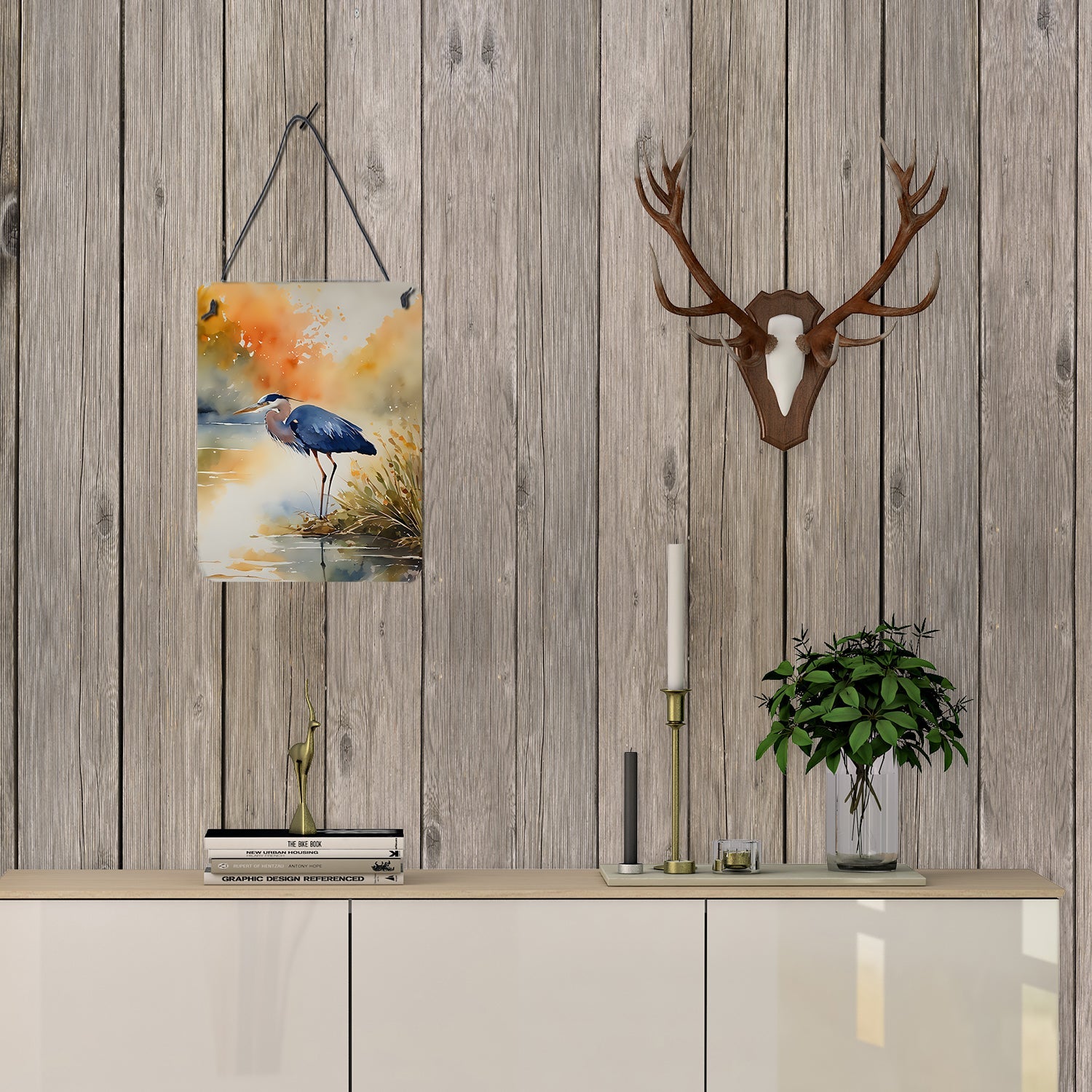 Wall or Door Hanging Prints featuring breed specific Blue Heron artwork. Spruce up your space with our Indoor or Outdoor Aluminum Artwork Prints. Designed to brighten your kitchen, bathroom, office, or outdoor areas like patios and porches, these prints offer a unique way to decorate your home or workspace. Measuring 12 by 16 inches, the prints are vibrant, full color, and bring an element of artistry to any setting. What makes these prints special is their durability and resistance to the elements. If placed outside, they can withstand direct sunlight for a considerable time before showing signs of fading. Crafted from rust and fade-resistant aluminum, these prints are built to last and maintain their vibrant colors. Each print comes with a black hanging rope and rounded corners for safety. The back of the print showcases a brushed silver color, adding a touch of sophistication. The lightweight design allows easy hanging with virtually any nail or screw, making installation a breeze. Whether indoors or outdoors, these prints add a distinctive touch to any space.