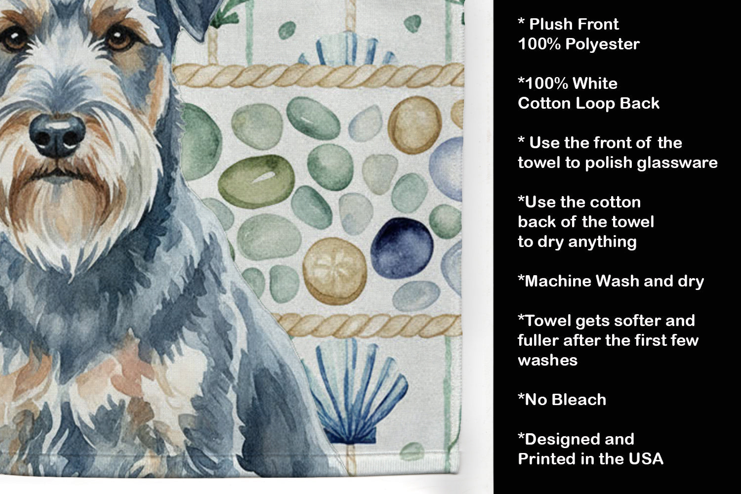 Kitchen Towel featuring breed specific Lakeland Terrier artwork. Bring breezy coastal charm to your kitchen or bath with our plush velour towel featuring original watercolor artwork. The soft minky polyester front showcases vivid seashell and starfish designs with a dog portrait, perfect for polishing glassware to a brilliant shine. The 100% cotton terry loop back delivers superior absorbency for drying hands, dishes, or counters. Artwork is dyed directly into the fibers for lasting color that won’t crack or peel. Each towel measures 15" x 25", with bound edges to maintain shape after repeated washes. Machine washable and tumble dry low for easy care. Designed and printed in the USA, these towels combine function and style—ideal for beach homes, coastal kitchens, or as thoughtful gifts.