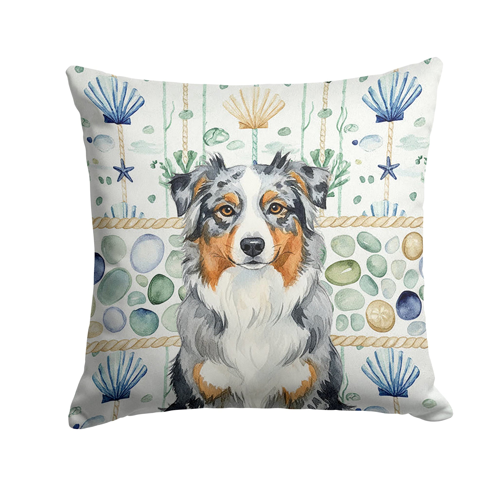 Throw Pillow featuring breed specific Australian Shepherd artwork. Add a touch of vibrancy and comfort to your outdoor seating with Caroline's Treasures Fabric Decorative Pillow. Measuring approximately 14 inches by 14 inches, this outdoor pillow is crafted to elevate the appeal of your patio furniture, infusing it with vivid color and artistic flair. The pillow includes a 100% Polyester Fabric sham filled with a quality pillow form to provide superior comfort. Innovatively made from our brand new material, specifically woven for its water resistance, this pillow is designed for durability. The soft canvas fabric offers versatility in use, fit for your indoor couch or your outdoor patio, porch, or veranda. The fabric is dyed with colorfast dyes built for resilience against weather conditions, ensuring the pillow retains its beauty over time. Constructed by sewing three fabric pieces to create a sham, the polyester insert is then nestled inside to form the pillow, resulting in an overstuffed pillow that maintains its shape. Both the sham and the pillow insert are proudly made in the United States. As the pillows are handcrafted, there may be minor variations in size, further enhancing their unique charm. Experience comfort in style with Caroline's Treasures Fabric Decorative Pillow.