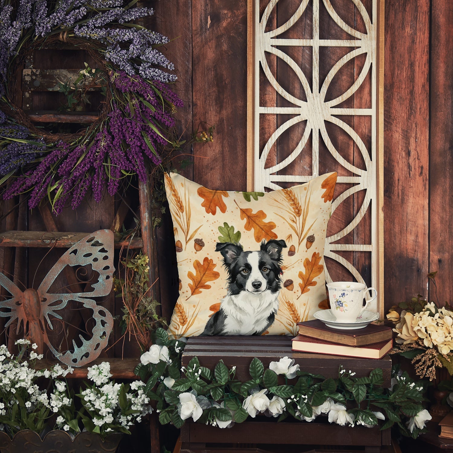 Throw Pillow featuring breed specific Border Collie artwork. Celebrate Thanksgiving with this Thanksgiving Pillow. Revitalize your outdoor or indoor living space with Caroline's Treasures 18x18 Fabric Decorative Pillow. With a generously sized dimension of approximately 18 inches by 18 inches, this pillow makes a comfortable and aesthetic addition to any seating area. Made from a unique, water-resistant material developed by Caroline's Treasures, the pillow sham is 100% polyester fabric that's durable and ready to weather any condition. Its vibrant, full-color artwork will not fade over time as it is dyed with color-fast dyes. Whether you place it on your patio furniture, porch, veranda, or indoor couch, its soft canvas fabric ensures a cozy experience. The pillow is handcrafted in the United States, featuring a sham created from three pieces of fabric and a polyester insert for enduring shape and overstuffed comfort. Despite being robustly built to endure the outdoors, it is as soft and snug as your favorite indoor cushions. Please note, as all our pillows are handmade, sizes may vary slightly, adding to the charm of this unique decorative item.