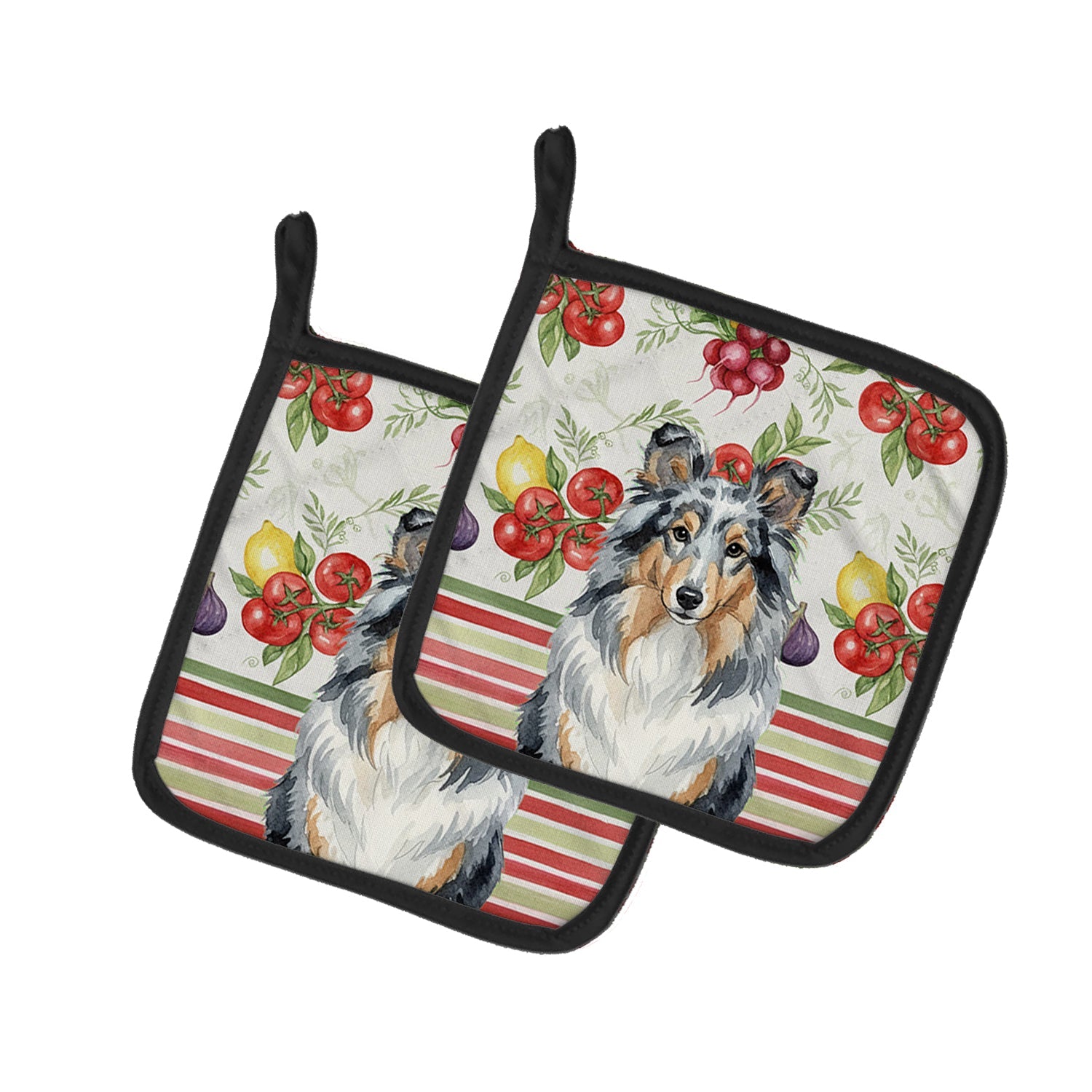 Pair of Pot Holders featuring breed specific Sheltie Shetland Sheepdog artwork. Add warmth, personality, and function to your kitchen with our Vegetables Pot Holder Pair. Each set includes two quilted hot pads, featuring original full-color watercolor artwork on a soft polyester front accented by black trim. Crafted with multiple layers for performance: Top Layer: Vibrant artwork permanently dyed into polyester fabric. Middle Layer: US-manufactured insulated material with breathable polyester fibers and a reflective metalized film that reflects heat back to its source. Bottom Layer: A silver heat-resistant backing for extra protection. Each pot holder measures 7.5" x 7.5", includes a hanging tab, and is quilted for durability. Use them to protect your hands, countertops, and tabletops — or as decorative trivets for Thanksgiving, Christmas, or everyday meals.