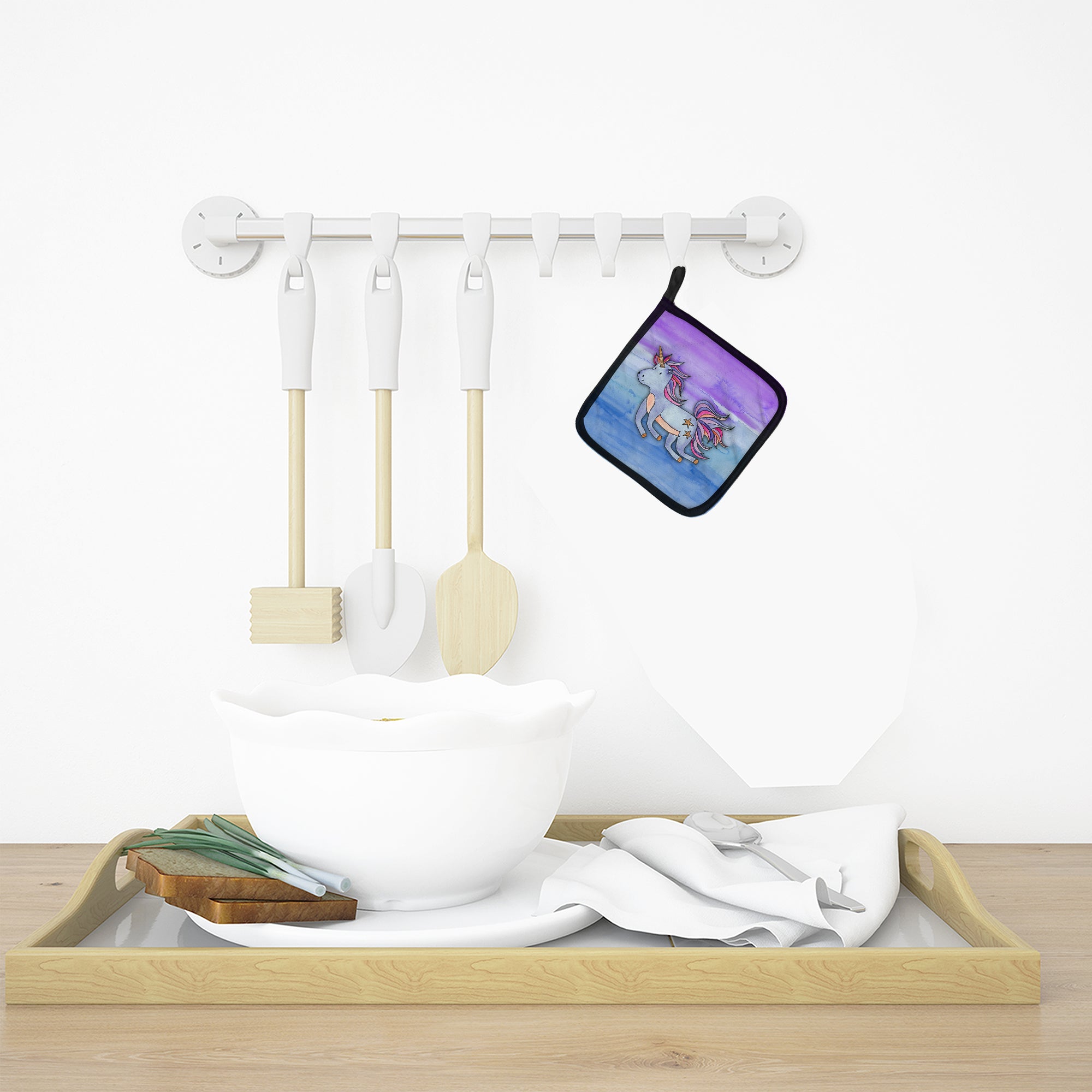 Blue Unicorn Watercolor Pot Holders - Set of 2 - Heat-Resistant Kitchen Essentials BB7433PTHD