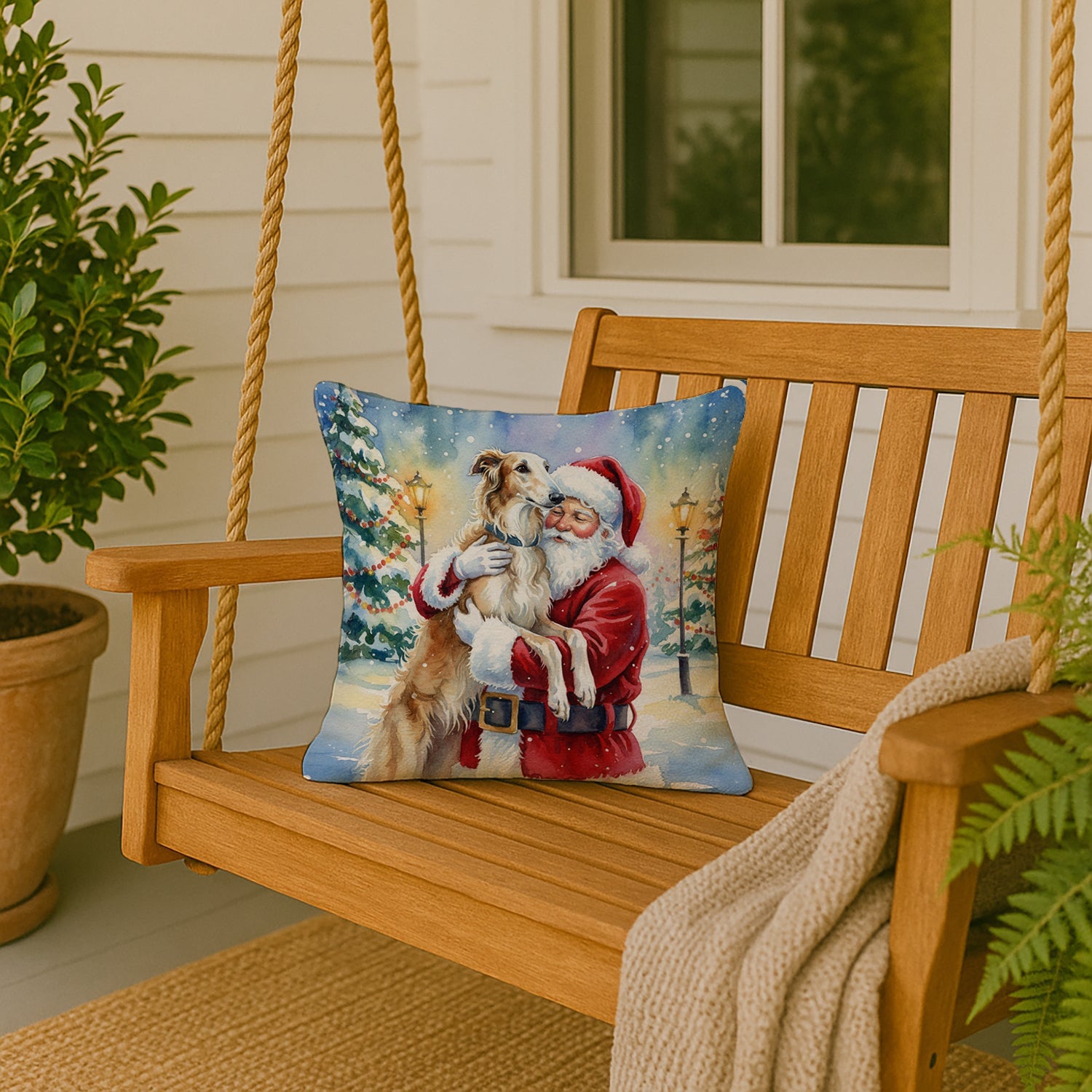 Throw Pillow featuring breed specific Borzoi artwork. Celebrate Christmas with this Christmas Pillow. Revitalize your outdoor or indoor living space with Caroline's Treasures 18x18 Fabric Decorative Pillow. With a generously sized dimension of approximately 18 inches by 18 inches, this pillow makes a comfortable and aesthetic addition to any seating area. Made from a unique, water-resistant material developed by Caroline's Treasures, the pillow sham is 100% polyester fabric that's durable and ready to weather any condition. Its vibrant, full-color artwork will not fade over time as it is dyed with color-fast dyes. Whether you place it on your patio furniture, porch, veranda, or indoor couch, its soft canvas fabric ensures a cozy experience. The pillow is handcrafted in the United States, featuring a sham created from three pieces of fabric and a polyester insert for enduring shape and overstuffed comfort. Despite being robustly built to endure the outdoors, it is as soft and snug as your favorite indoor cushions. Please note, as all our pillows are handmade, sizes may vary slightly, adding to the charm of this unique decorative item.