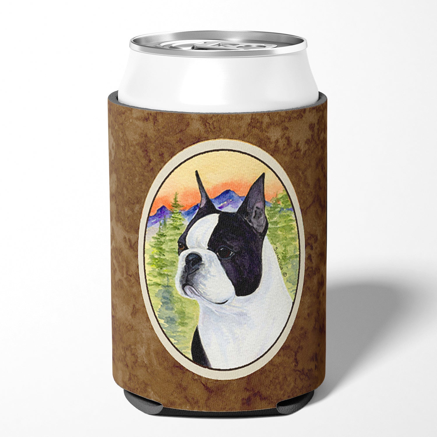 Decorate your space with our Boston Terrier artwork on a Hugger. Introducing our Can or Bottle Hugger, a must-have accessory for your beverage enjoyment. Designed to perfectly fit any standard 12-ounce can, this can cooler is the ideal companion to keep your soda, beer, or any drink of your choice at the perfect temperature. Our can hugger is not just functional, it's a work of art. Featuring full-color artwork that's permanently dyed into the foam, this hugger promises a design that's fade-resistant and made to last, making your beverage stand out in style. The design isn't silk-screened, which ensures the vibrancy of the colors, offering you a long-lasting, appealing aesthetic. What sets our can hugger apart is its high-quality foam fabric, which is not only durable but also machine washable for easy maintenance. Whether you call it a huggie, can coolie, can cozie, or beer holder, this drink sleeve brings style and function together. Proudly designed, printed, and sewn in the USA, our Can or Bottle Hugger is an ideal addition to your beverage experience. Match it with one of our insulated coolers for a complete gift set, adding flair and convenience to your drink enjoyment.