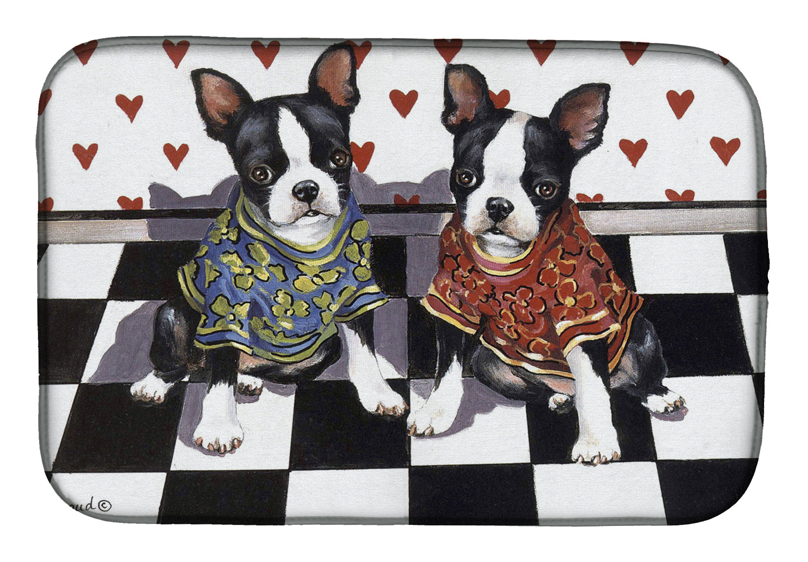 Decorate your space with our Boston Terrier artwork on a Dish Drying Mat. Say goodbye to messy countertops and soggy dish towels with our innovative dish drying mat. Our high-quality dish drying pad is designed to keep your countertops dry while offering a stylish and efficient solution. Whether you're air drying dishes, glasses, stemware, silverware, pots, pans, bottles, or even fruits and vegetables, our dish mat is the perfect choice. The 14 inches x 22 inches size fits most counters and dish drying racks, and the non-slip design ensures stability. Made with water-absorbent polyester and a polyurethane foam insert, our dish drying mat is not only functional but also durable. It's machine washable and printed in the USA for long-lasting use. The beautiful artwork adds flair to your kitchen decor, making it a perfect housewarming gift or present for any occasion. Upgrade your kitchen experience with our absorbent and versatile dish drying mat.