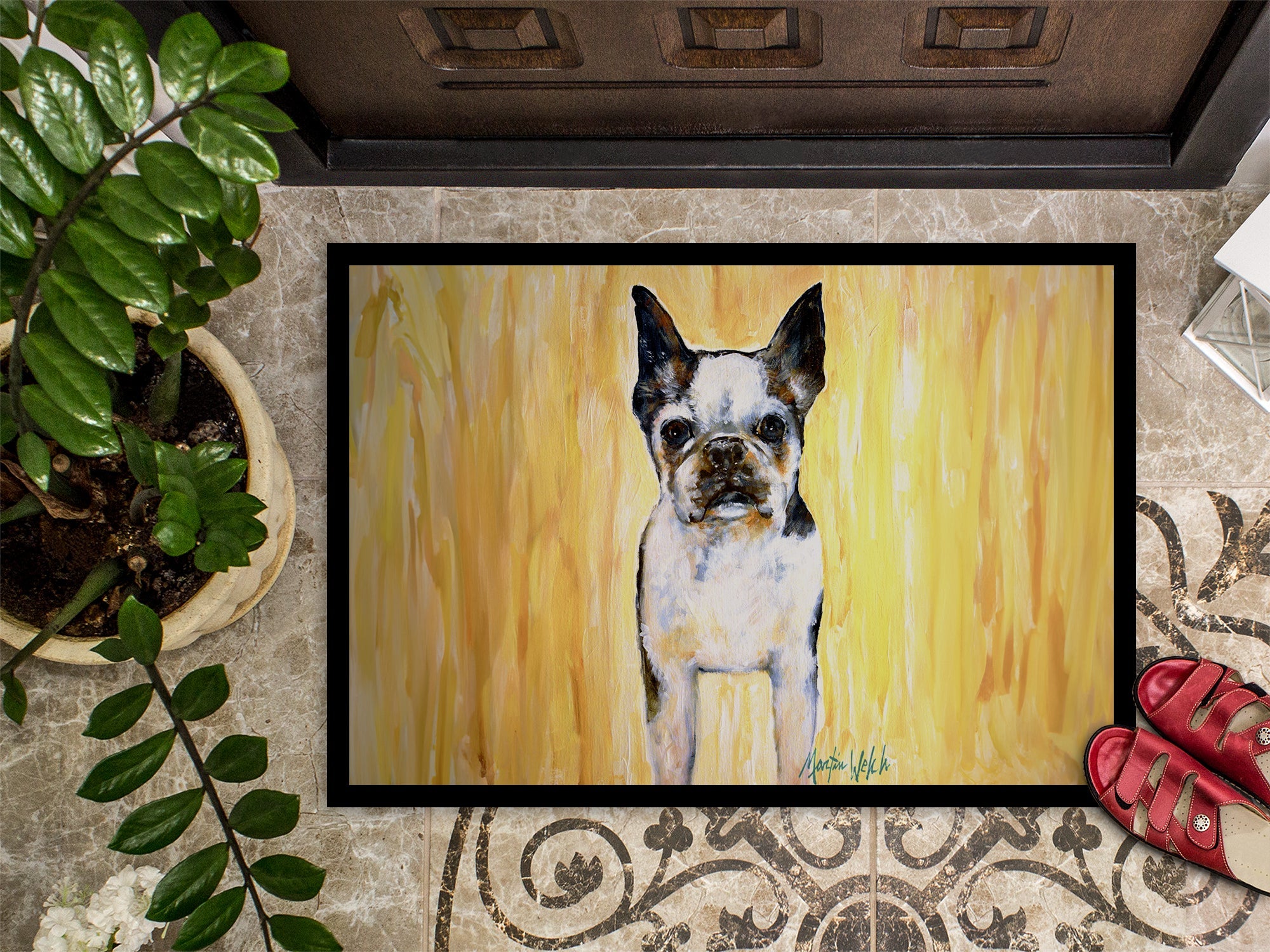 Welcome your guests in style with our Artwork Door Mat, designed to withstand almost any weather condition. This mat, measuring approximately 18 by 27 inches, is held together by durable black binding tape. Its top layer, composed of polyester felt, is dyed with the eye-catching image you see on the mat. A few layers below provide the mat with stability, while its rubber bottom is stamped to help prevent slipping and ensures safety. Our mat works wonderfully as both an indoor or outdoor door mat. For cleaning, simply hose it off with water or use a power washer - no need for any cleaner that produces suds. Avoid scrubbing with a brush, instead, opt for the vacuum on floor setting. Designed manufactured and printed in the USA, this mat is a perfect addition to your porch, outdoor kitchen, entryway, or any indoor space. Its unique design makes it a charming decorative rug that greets your guests and adds a stylish touch to your home decor.