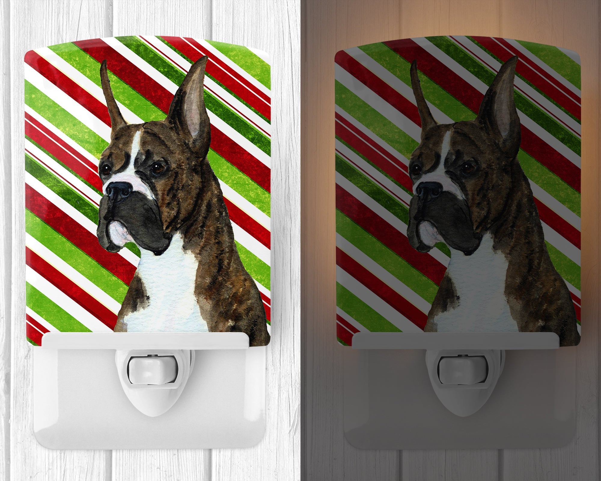Decorate your space with our Christmas Boxer artwork on a Night Light. Introduce a splash of artistic flair and subtle illumination to your space with the Decorative Ceramic Night Light from Caroline's Treasures. Perfect for any room, this night light seamlessly blends functionality with an aesthetic appeal, offering a stylish solution to brighten up dark corners of your home or office. Boasting a six-inch high by four-inch wide ceramic tile at the front, it showcases vivid, full-color artwork from distinguished artists, transforming a simple utility into a vibrant art piece. The artwork is securely encased in a robust metal holder, ensuring durability and longevity. Two screws are provided to firmly affix the tile into the holder. The holder extends three inches deep, housing an included bulb that emits a soft, welcoming glow. This product meets all safety standards, as evidenced by its UL approval. Proudly made in the United States from imported components, this Decorative Ceramic Night Light is not just a functional device; it's a statement piece that enhances the ambiance of your surroundings.