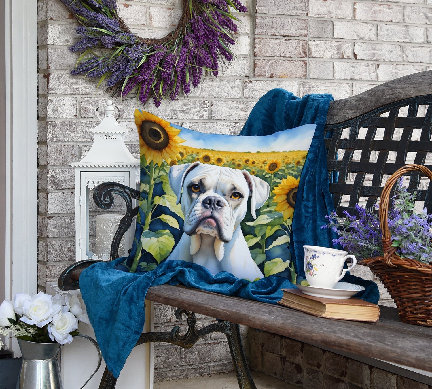 Decorate your space with our Boxer artwork on a Pillow. Bring a bit of Summer into your home with a Summer Pillow. Revitalize your outdoor or indoor living space with Caroline's Treasures 18x18 Fabric Decorative Pillow. With a generously sized dimension of approximately 18 inches by 18 inches, this pillow makes a comfortable and aesthetic addition to any seating area. Made from a unique, water-resistant material developed by Caroline's Treasures, the pillow sham is 100% polyester fabric that's durable and ready to weather any condition. Its vibrant, full-color artwork will not fade over time as it is dyed with color-fast dyes. Whether you place it on your patio furniture, porch, veranda, or indoor couch, its soft canvas fabric ensures a cozy experience. The pillow is handcrafted in the United States, featuring a sham created from three pieces of fabric and a polyester insert for enduring shape and overstuffed comfort. Despite being robustly built to endure the outdoors, it is as soft and snug as your favorite indoor cushions. Please note, as all our pillows are handmade, sizes may vary slightly, adding to the charm of this unique decorative item.