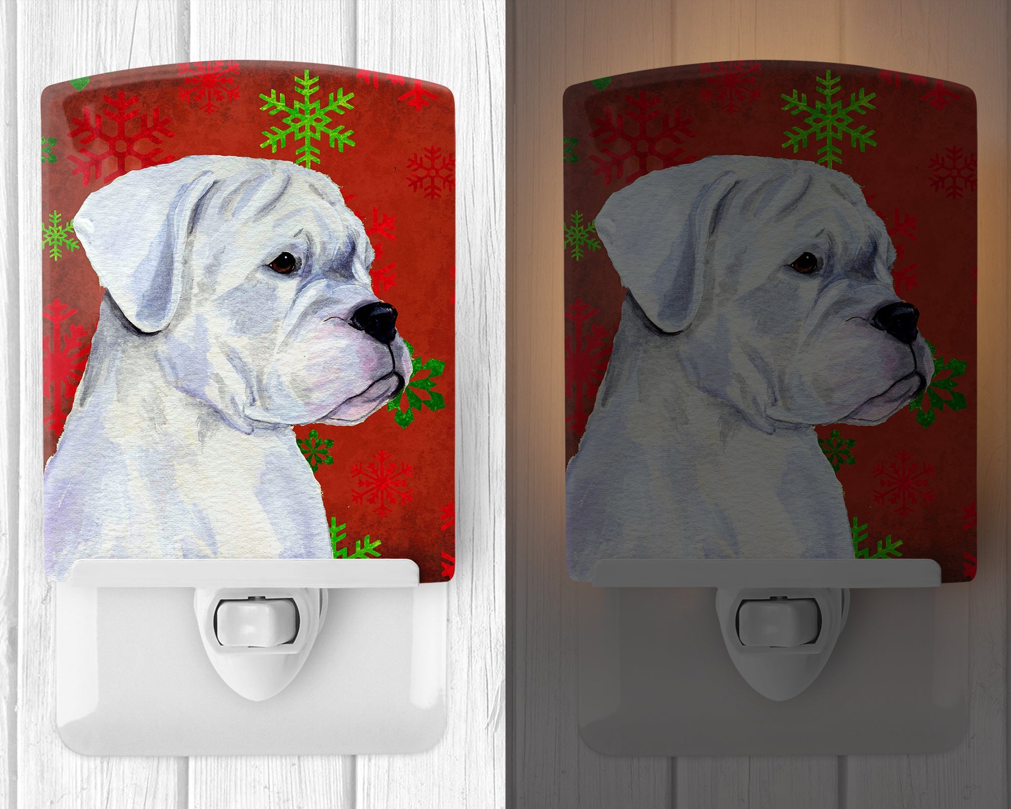 Decorate your space with our Christmas Boxer artwork on a Night Light. Introduce a splash of artistic flair and subtle illumination to your space with the Decorative Ceramic Night Light from Caroline's Treasures. Perfect for any room, this night light seamlessly blends functionality with an aesthetic appeal, offering a stylish solution to brighten up dark corners of your home or office. Boasting a six-inch high by four-inch wide ceramic tile at the front, it showcases vivid, full-color artwork from distinguished artists, transforming a simple utility into a vibrant art piece. The artwork is securely encased in a robust metal holder, ensuring durability and longevity. Two screws are provided to firmly affix the tile into the holder. The holder extends three inches deep, housing an included bulb that emits a soft, welcoming glow. This product meets all safety standards, as evidenced by its UL approval. Proudly made in the United States from imported components, this Decorative Ceramic Night Light is not just a functional device; it's a statement piece that enhances the ambiance of your surroundings.