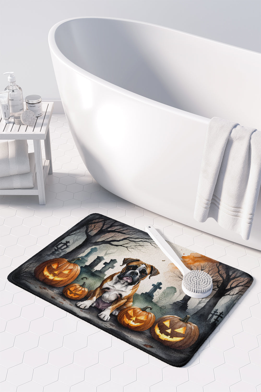 Decorate your space with our Halloween Boxer artwork on a Floor Mat. Transform your floor into a work of art with Caroline's Treasures' Memory Foam Mat. This mat offers not only a stunning visual appeal but also a luxurious, plush feel that's incredibly comfortable to the touch. It's a versatile, machine-washable mat designed for both bath and kitchen use, ensuring you experience the best in comfort and convenience. Care Instructions: Maintaining this memory foam mat is a breeze. Simply follow the care instructions on the product tag. It's recommended to wash in cold water and dry on a low-temperature setting in the dryer. This ensures the mat retains its quality and longevity, allowing you to enjoy its beauty and comfort for a long time. Caroline's Treasures' Memory Foam Mat Machine Washable is the perfect blend of artistry, comfort, and practicality, making it a standout addition to any space. Upgrade your home decor with this versatile and stylish mat today.