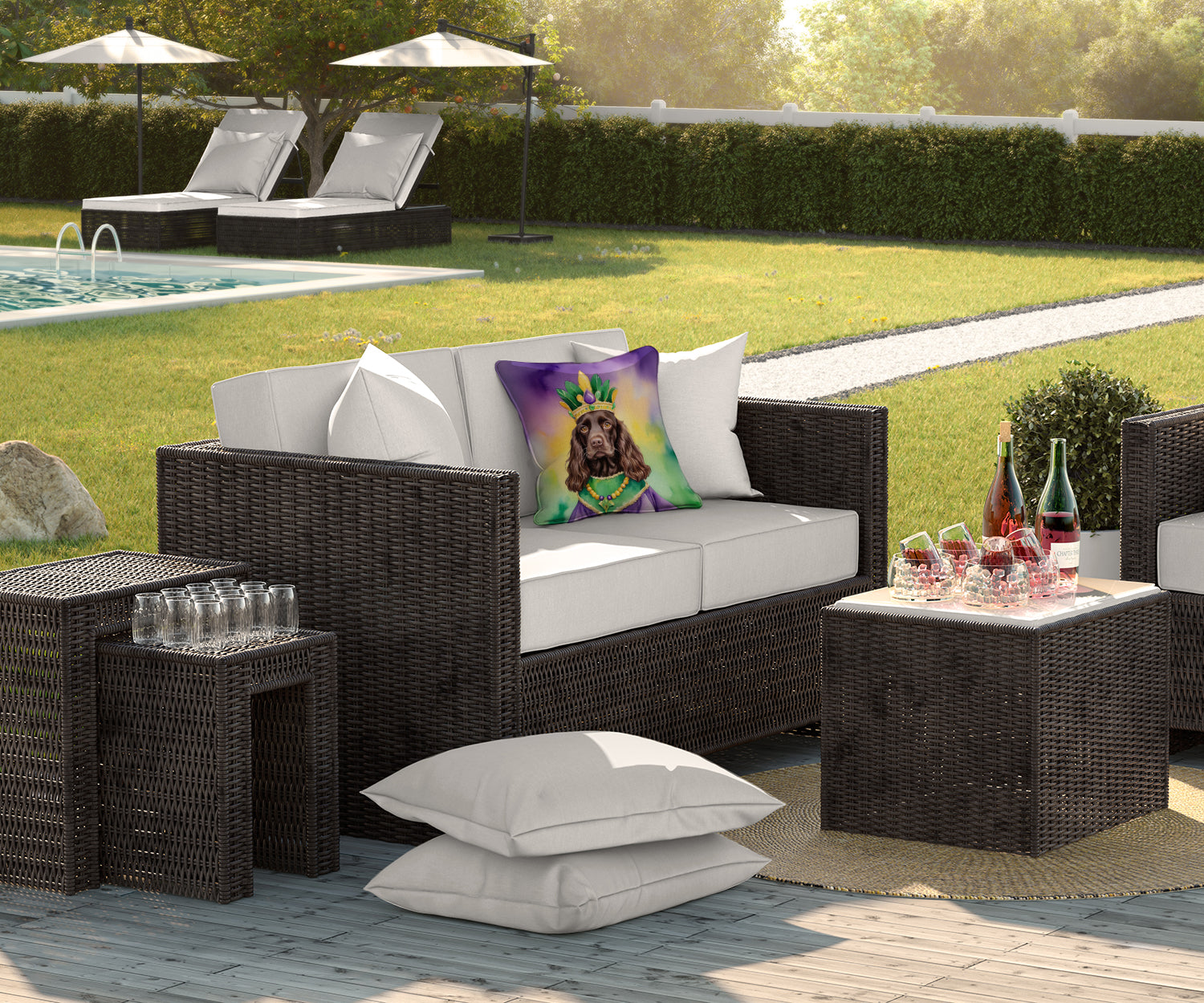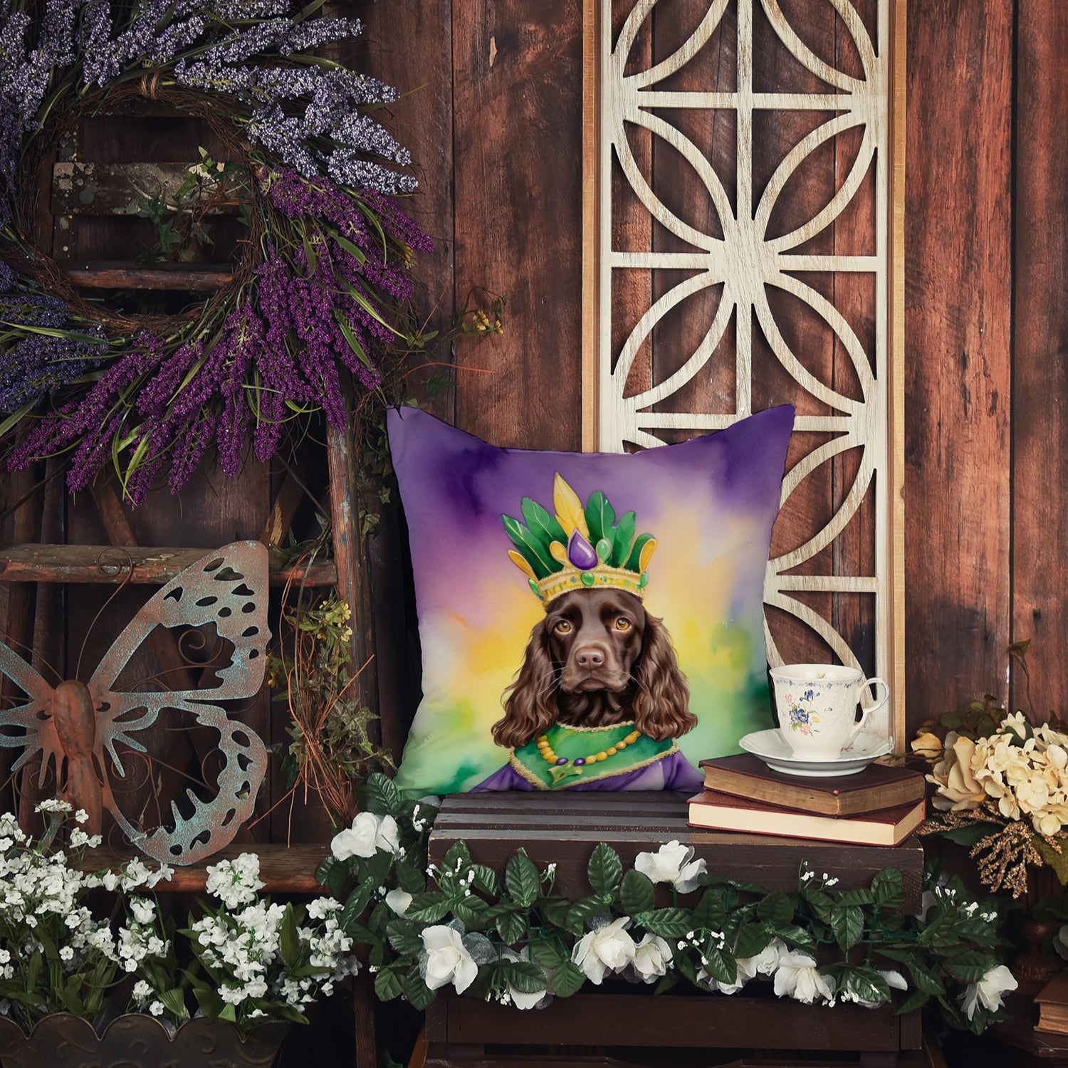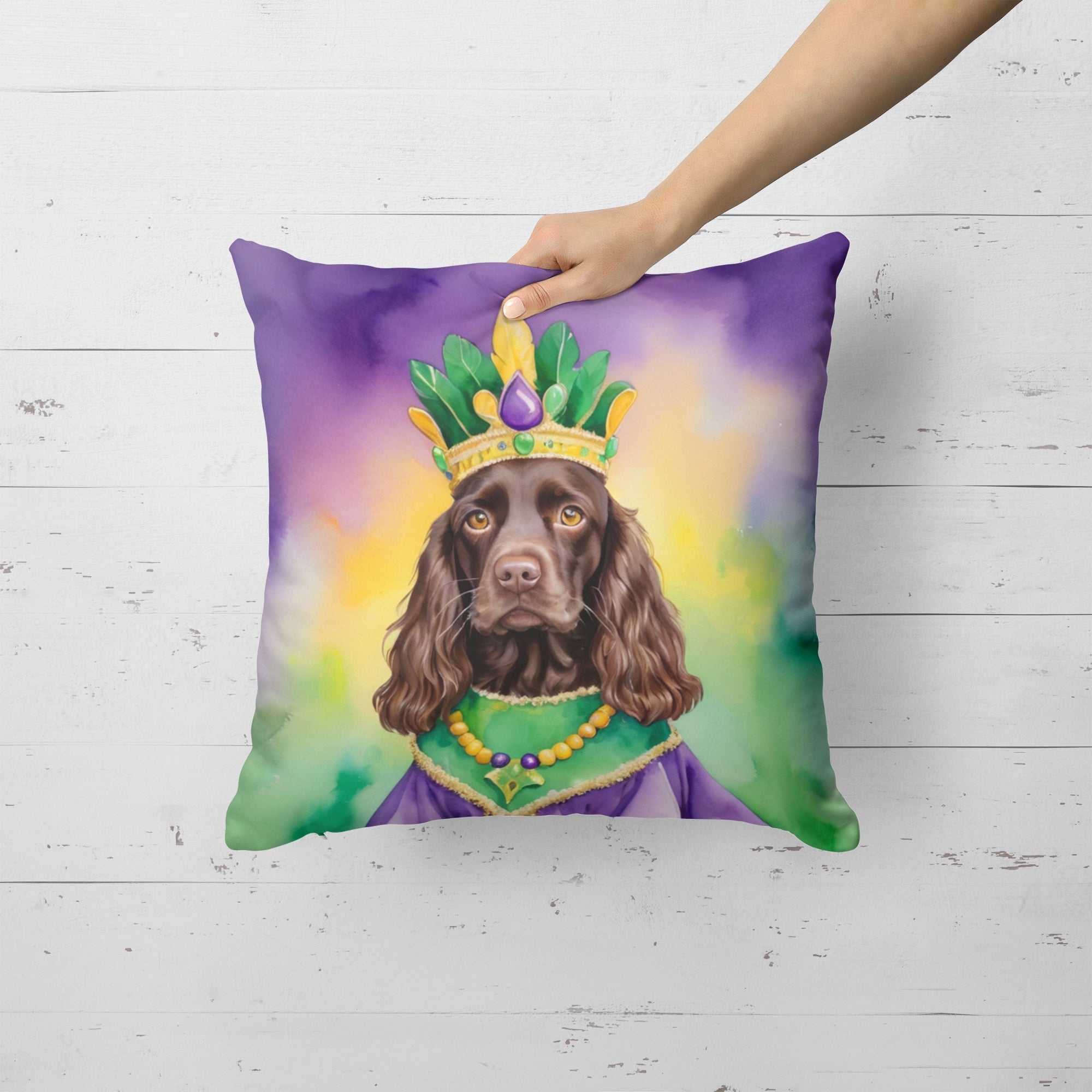 Throw Pillow featuring breed specific Boykin Spaniel artwork. Celebrate Mardi Gras with this Mardi Gras Pillow. Revitalize your outdoor or indoor living space with Caroline's Treasures 18x18 Fabric Decorative Pillow. With a generously sized dimension of approximately 18 inches by 18 inches, this pillow makes a comfortable and aesthetic addition to any seating area. Made from a unique, water-resistant material developed by Caroline's Treasures, the pillow sham is 100% polyester fabric that's durable and ready to weather any condition. Its vibrant, full-color artwork will not fade over time as it is dyed with color-fast dyes. Whether you place it on your patio furniture, porch, veranda, or indoor couch, its soft canvas fabric ensures a cozy experience. The pillow is handcrafted in the United States, featuring a sham created from three pieces of fabric and a polyester insert for enduring shape and overstuffed comfort. Despite being robustly built to endure the outdoors, it is as soft and snug as your favorite indoor cushions. Please note, as all our pillows are handmade, sizes may vary slightly, adding to the charm of this unique decorative item.