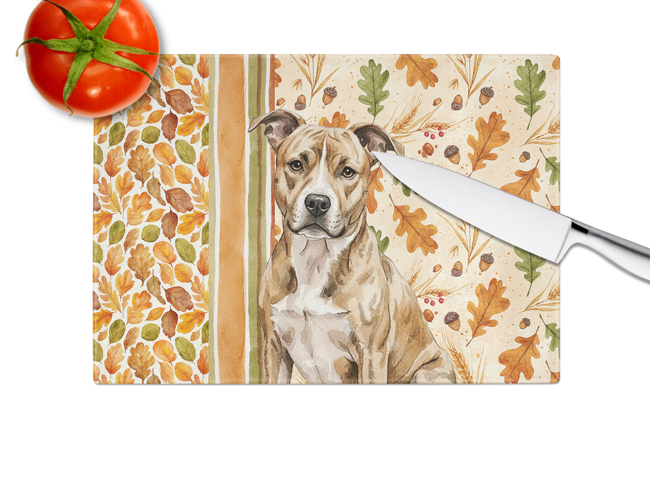 Brindle American Staffordshire Terrier Heirloom Fall Glass Cutting Board