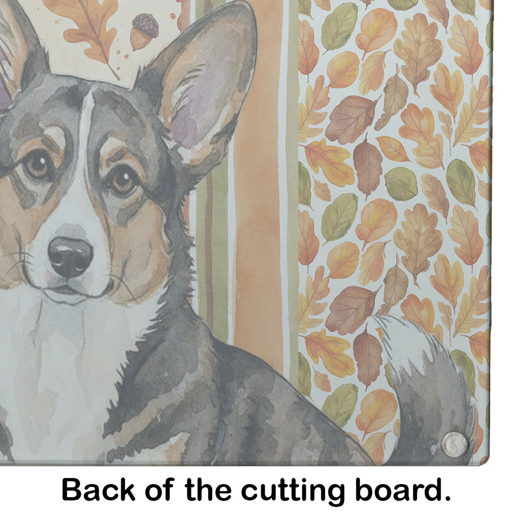 Brindle Cardigan Welsh Corgi Heirloom Fall Glass Cutting Board