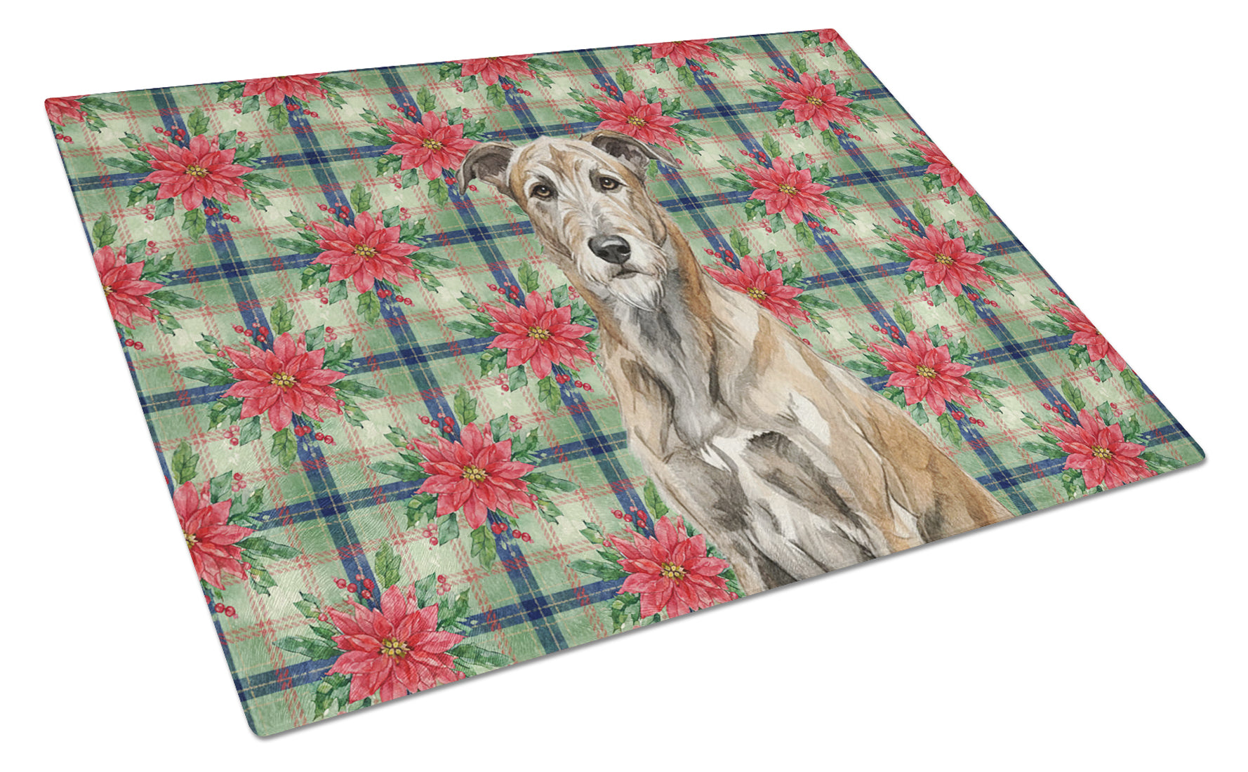 Glass Cutting Board featuring breed specific Irish Wolfhound artwork. Celebrate Christmas with this Christmas Cutting Board. Introduce your kitchen to the vibrant, large Decorative Glass Cutting Board from Caroline's Treasures. Crafted from resilient tempered glass, this board is not only a utilitarian necessity but also a colorful art piece. With its generous dimensions of 15 inches in height and 11 inches in length, it offers ample space for all your cutting needs. Every piece showcases captivating artwork from distinguished artists, bringing an aesthetic edge to your kitchen. Beyond its attractive design, this cutting board ensures your countertop stays pristine and unscathed, owing to its heat-resistant properties. Engineered with user convenience in mind, it features non-skid feet for stability, and rounded corners for additional safety. Its robust construction renders it virtually unbreakable, guaranteeing longevity. The board comes with protective feet bumpers, maintaining its position during use. This product is recommended to be hand washed only. Proudly printed and assembled in the United States, this cutting board exemplifies superior craftsmanship. With Caroline's Treasures' Decorative Glass Cutting Board, you're investing in a blend of functionality and artistic flair.